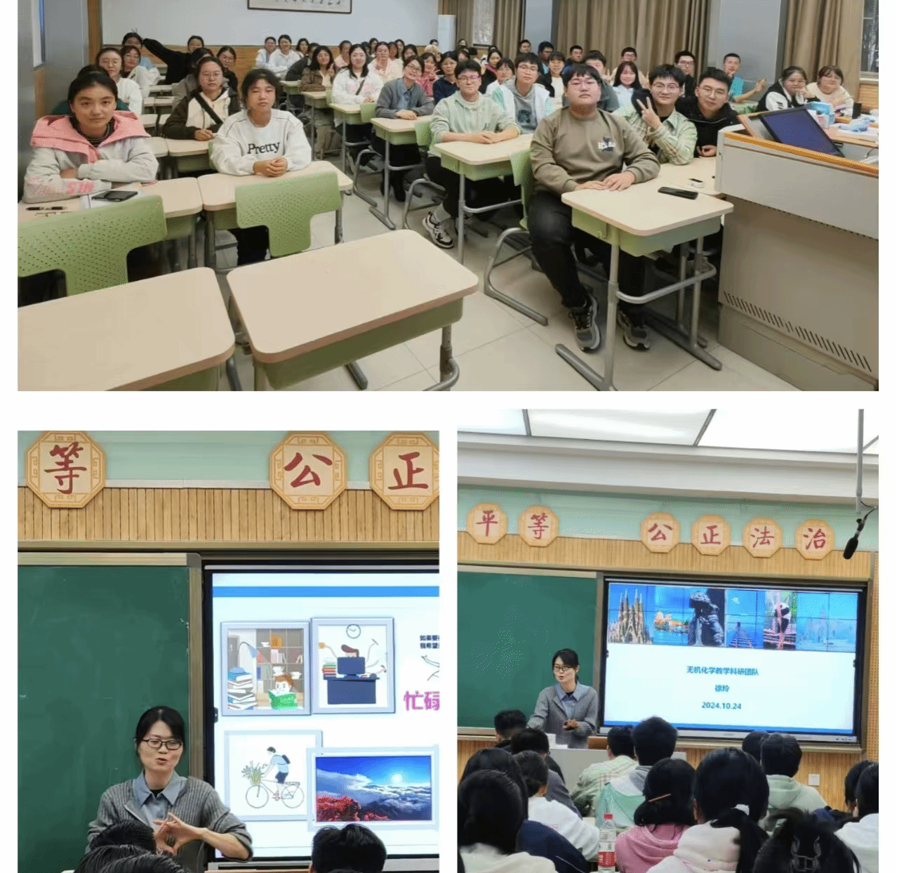 10月24日,化学卓越2401班在雁塔校区教学四楼4105教室举办“教授接待日”活动,张尊听教授和咸阳市实验中学的特级教师葛秋萍老师应邀参加。活动中,葛老师为同学们详细阐述了特级教师和正高级教师的评选要求。她指出,要想在化学教育领域脱颖而出,成为一名卓越的化学教师,必须拥有过硬的教学技能。同时,葛老师也介绍了多种有效的化学教学方法,如实验演示、案例分析、小组讨论等,并鼓励同学们在实践中不断探索和创新。通过活动,同学们不仅收获了丰富的教育知识和教学技能,更被葛老师对教育事业的热爱和执着所深深感染。
