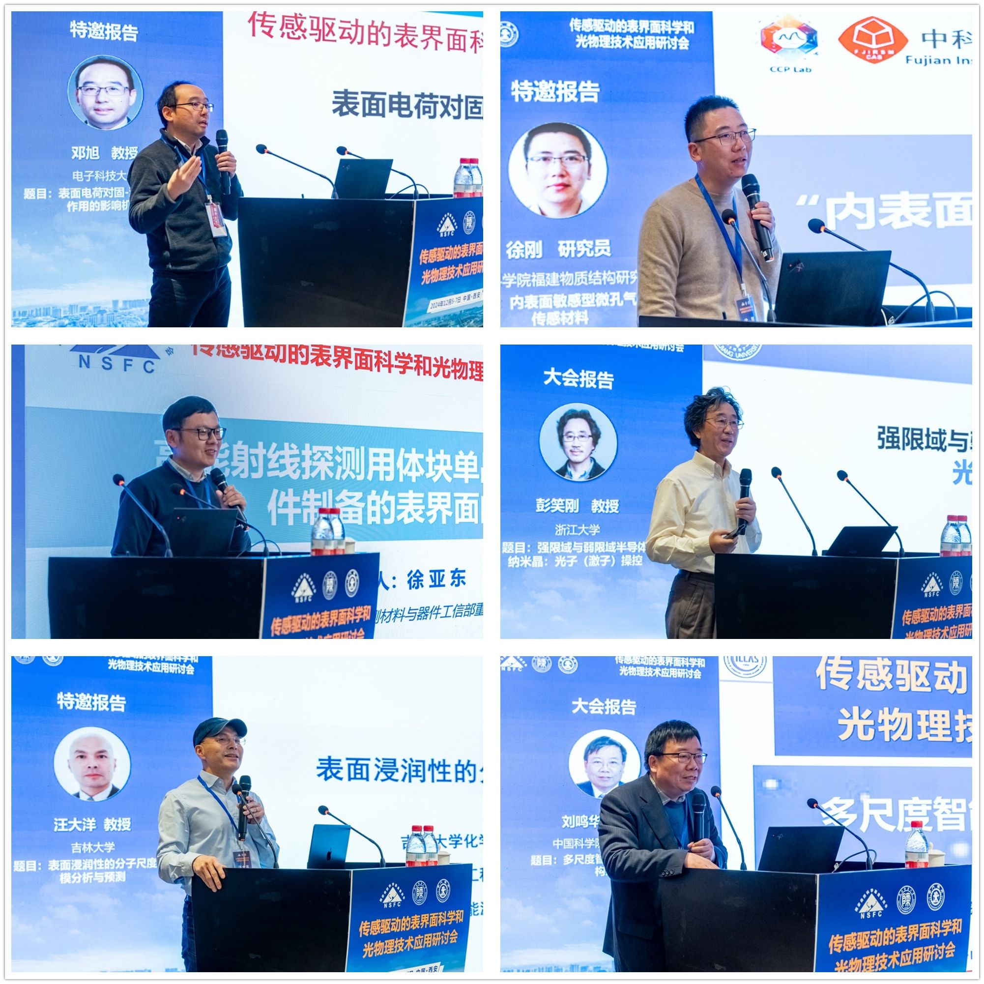 之后的学术报告从不同视角、不同领域涵盖了表界面化学基础与应用发展概括以及取得的重要研究进展,内容丰富,讨论热烈,包括华东理工大学田禾院士的“动态化学之大道至简”、西北工业大学苑伟政教授的“仿生微纳结构及其应用”、西安交通大学邵金友教授的“界面润湿与流体微纳制造”、英国Northumbria大学Qiang Wu副教授的“微纳光纤干涉仪传感器及其应用研究”、中国科学院大连化学物理研究所冯亮研究员的“高性能传感膜研究及应用”、西北工业大学徐亚东教授的“核辐射探测用体块单晶生长与器件制备的表界面问题思考”、北京邮电大学夏安东教授的“溶剂化与激发态构象诱导的对称性破缺电荷转移动力学研究”、北京师范大学崔刚龙教授的“激发态与非绝热过程”、电子科技大学邓旭教授的“表面电荷对固-液界面相互作用的影响机制”、中国科学院福建物质结构研究所徐刚研究员的“内表面敏感型微孔气敏传感材料”、浙江大学彭笑刚教授的“强限域与弱限域半导体纳米晶:光子(激子)操控”、吉林大学汪大洋教授的“表面浸润性的分子尺度建模分析与预测”及中国科学院化学研究所刘鸣华研究员的“多尺度智能软物质体系的构建”。