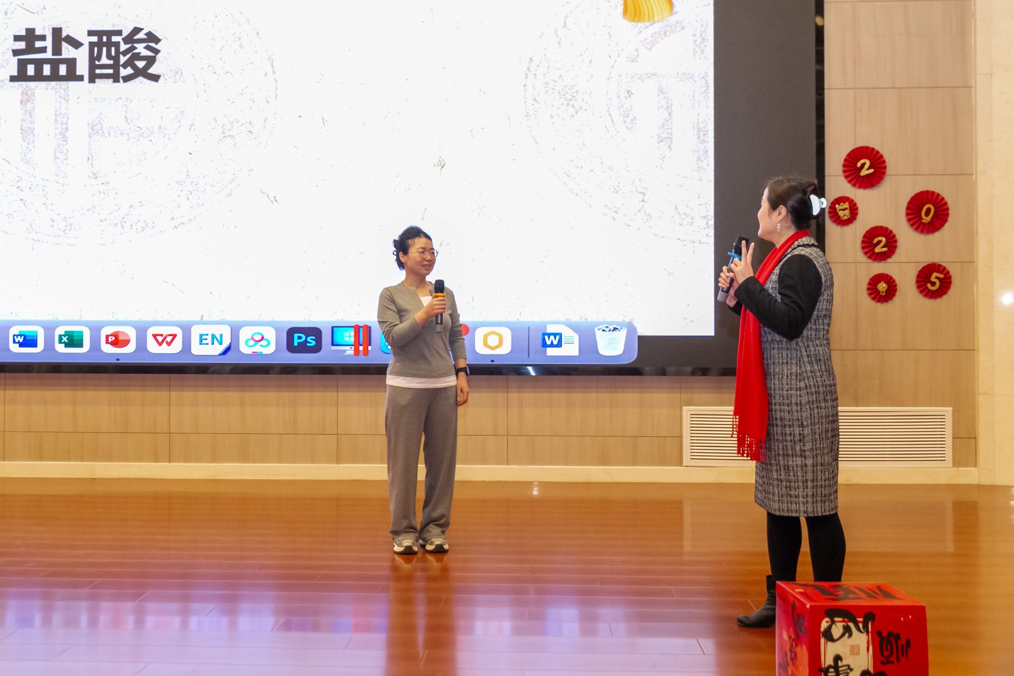联谊会上,趣味互动的各类游戏接连不断。《东拼西凑》、《一块五》游戏现场欢声笑语、气氛活跃;《心心相印》、《夹气球》老师们两两搭档,尽显默契与合作;《猜猜看》你抢我答,《击鼓传花》热闹非凡。联谊会上的抽奖环节是联谊会上最激动人心的环节之一,学院领导和教师代表为获奖教职工送上新年祝福。