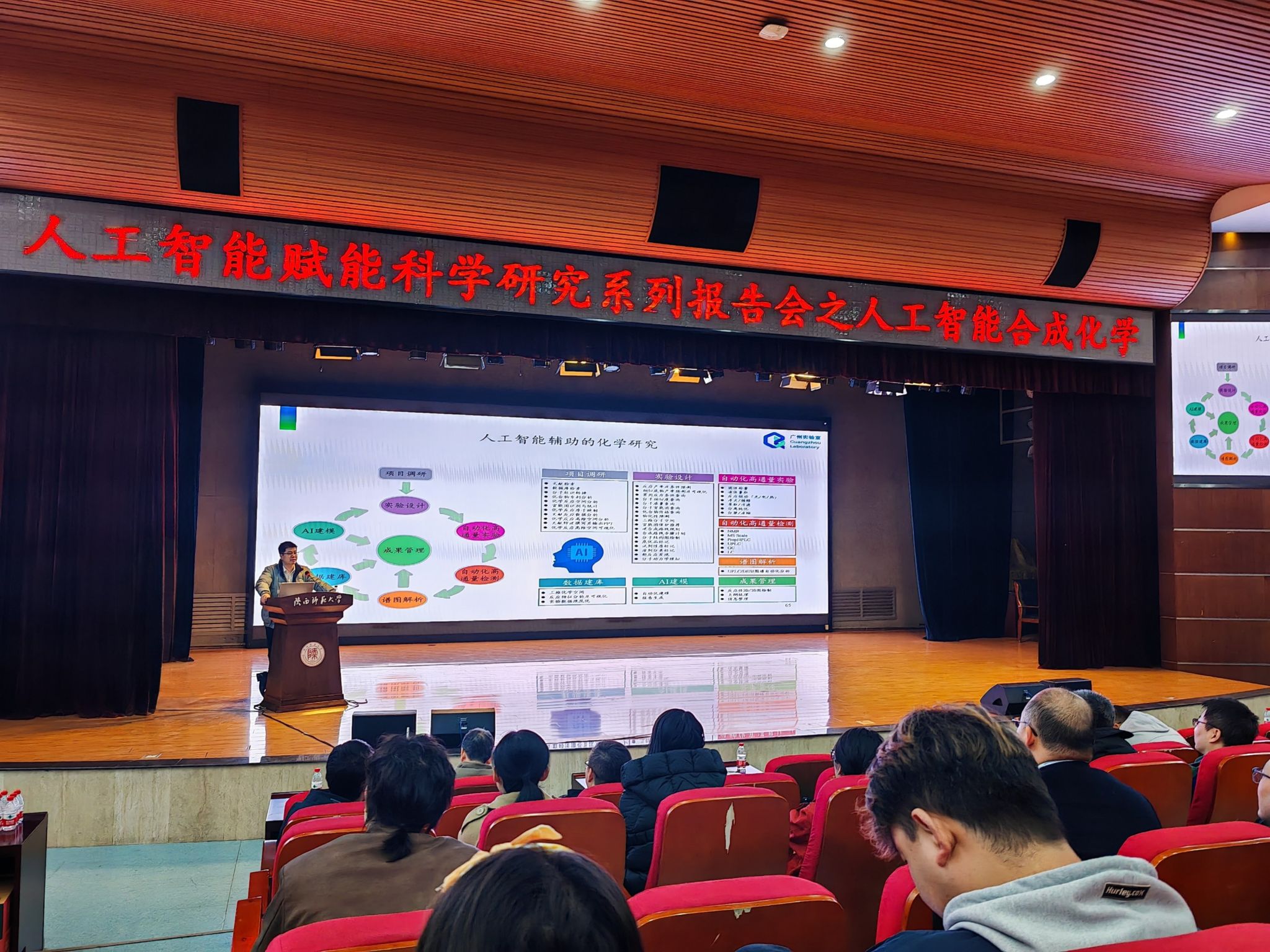 联合主办的人工智能赋能科技创新专题学术报告会首场报告在新勇学生活动中心二层学生剧场举办。本次报告邀请广州国家实验室廖矿标研究员作题为“人工智能合成化学”的专题学术报告。全校各理工科学院主管科研的副院长、教师代表、学生代表、科学技术处干部及各理工科学院科研秘书参加本次会议。我校科学技术处处长、蘑菇视频