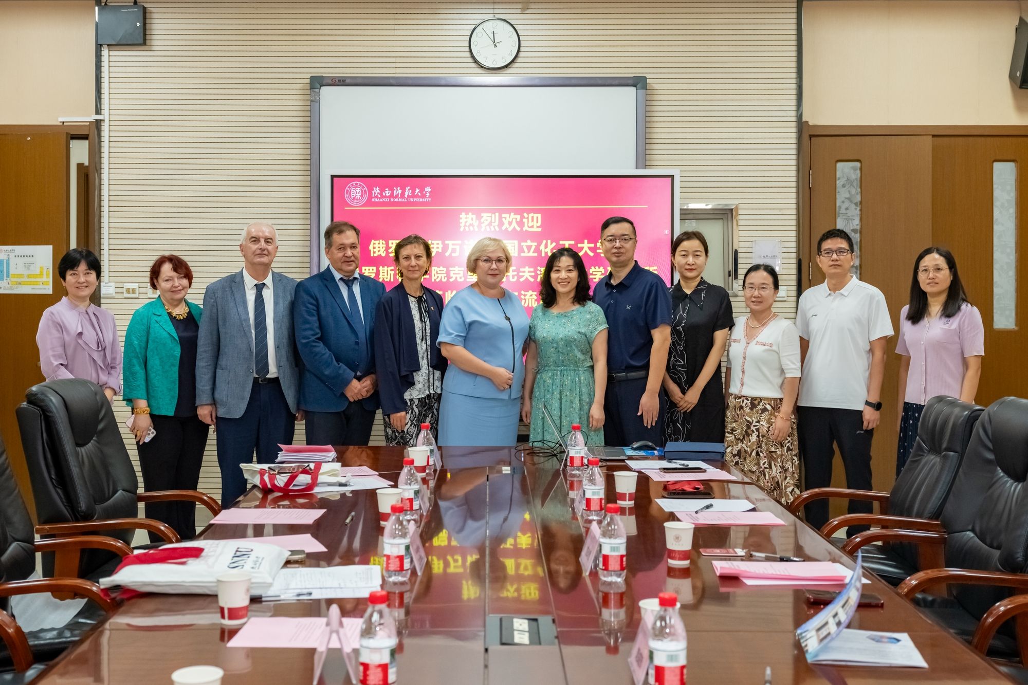 进行学术交流与座谈,共商合作。座谈会在致知楼1362会议室进行,学院书记高玲香、院长刘成辉、副院长丁立平、翟全国,国际交流与合作处副处长李娟,外国语学院教授孟霞和娜塔莉 • 察廖娃等参加座谈会,座谈会由丁立平主持。
