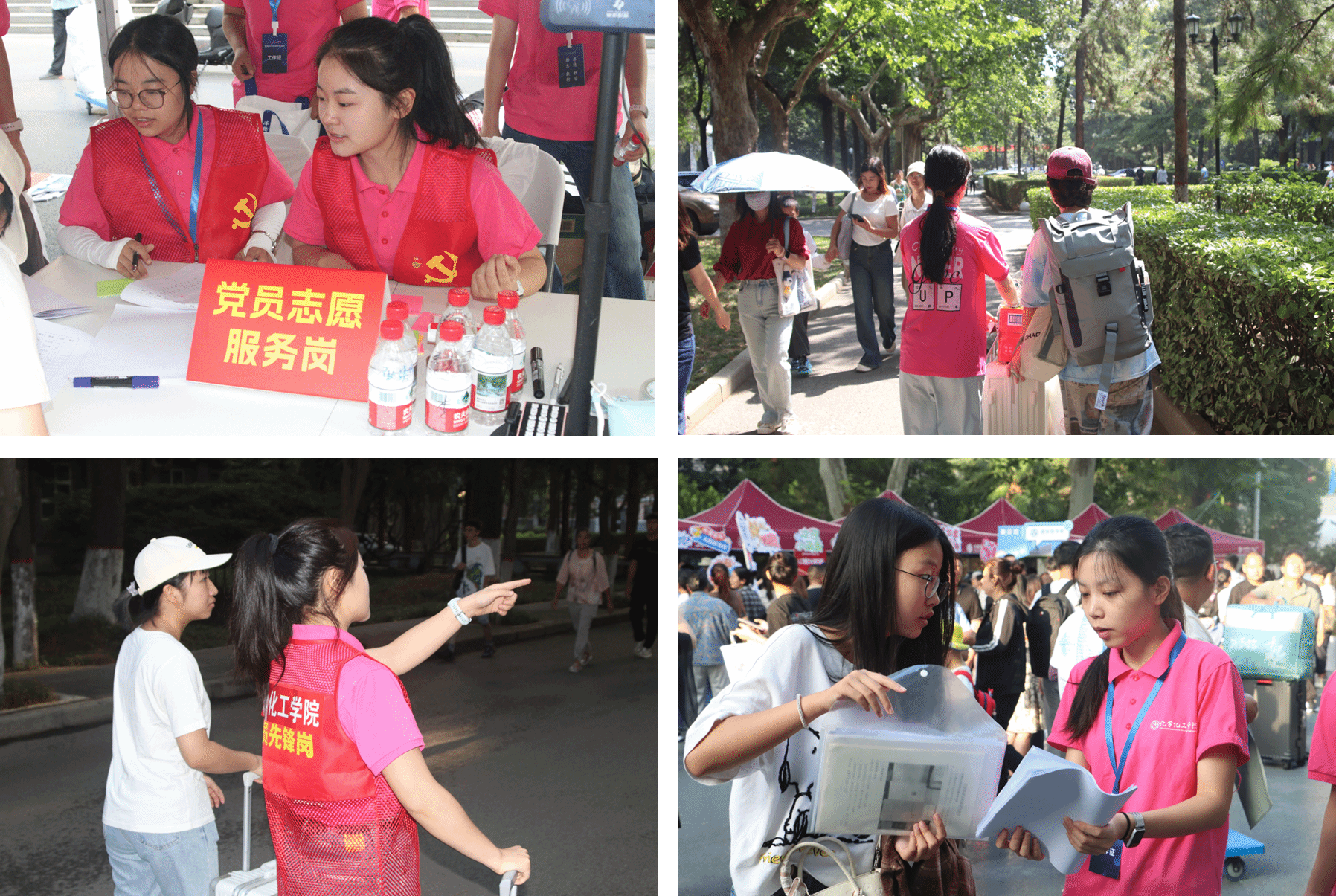 为深入推进“以生为本”的“三全育人”格局建设,帮助新生尽快适应融入,学院迎新工作领导小组提前谋划、周密部署、打磨方案,让迎新满含暖意。报到当日,校园里处处可见身着粉色文化衫的学生志愿者,由学生党员组成的“党员先锋岗”也成为校园中一抹亮色,他们早早守候在校门口、图书馆、宿舍楼和报到处等迎新点,主动上前搬运行李、指引手续、解答疑问……化身“指路明灯”,用真诚与热情缓解驱散新生初到校园的陌生与拘谨。
