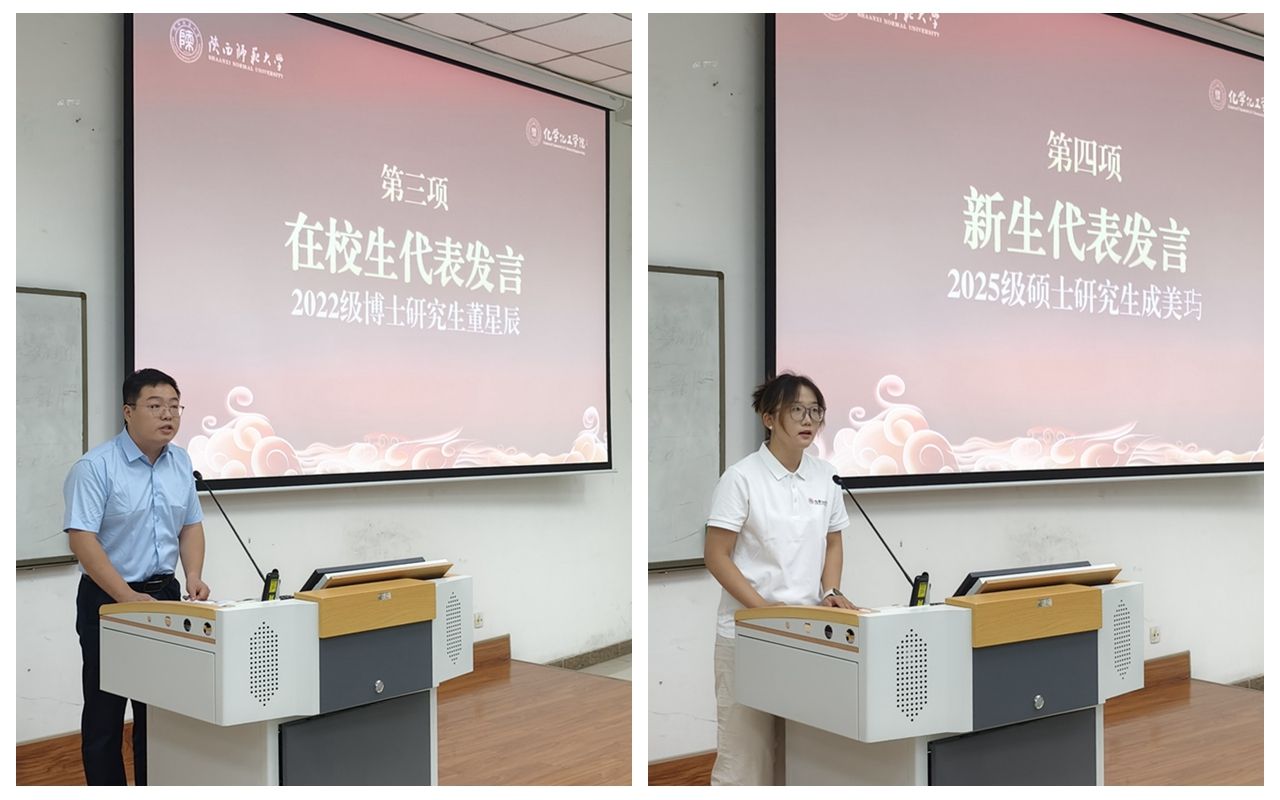 2022级博士研究生董星辰作为在校生代表发言,他结合科研经历,分享了从基础实验操作到攻克课题瓶颈的心理历程,鼓励新生心怀国家、脚踏实地、虚心问学。2025级硕士研究生成美玙作为新生代表发言,表示将努力强化专业基础、培养创新精神、勇担时代责任,以实际行动践行科研初心。