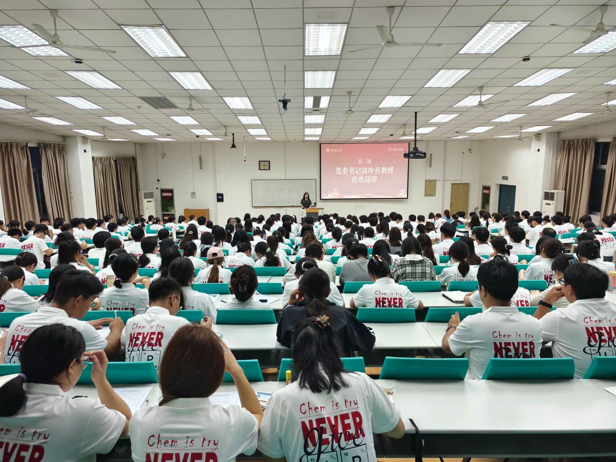 贾颍辉以“提升认知,赢得未来”为题作报告,围绕思想政治素质、校园安全稳定、职业生涯规划等方面展开,要求新生坚定理想信念、注重道德培育、守护身心健康、筑牢安全防线。同时,引导新生通过学院“接诉即办”渠道合理反馈意见建议,切实解决学习生活中的实际问题。