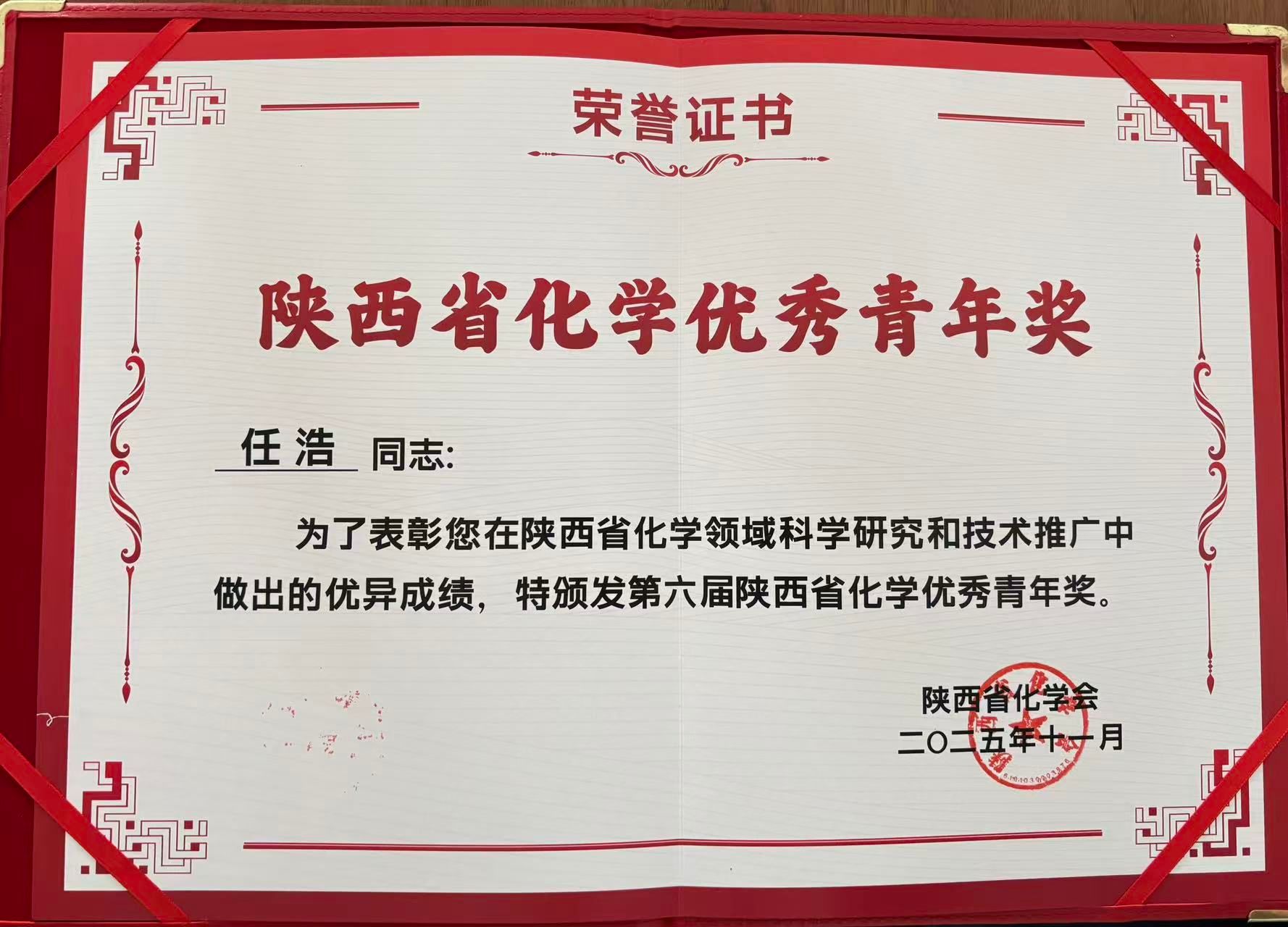 任浩副研究员获第六届“陕西省化学优秀青年奖”。