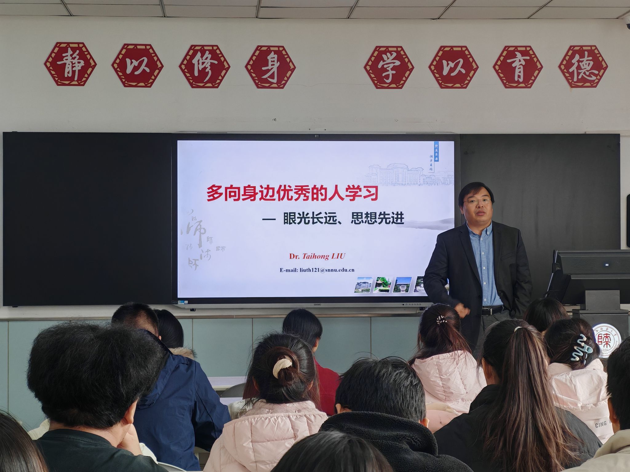 11月17日、26日,刘太宏副教授先后参加化优2401班、化优2402班举办的“教授接待日”活动,结合自身经验与育人理念,为两班学子带来两场兼具实用性与思想性的精彩分享,搭建起高效的师生沟通桥梁。在化优2401班活动中,他结合自身经历聚焦学习与科研方法,叮嘱同学们要主动观察身边优秀者并借鉴其高效学习方式,积极向导师、学长请教选题思路与实验技巧,借助前辈经验规避弯路。他期望大家将“向优秀者学习”内化为习惯,在相互借鉴中积累知识,在彼此启发中开展有温度的科研,最终成长为能照亮他人的优秀人才。针对化优2402班学子,他以“放长眼光、提高思想”为主题,结合身边人的就业实例,生动阐释了求学对拓宽人生边界、赋能长远发展的关键意义。鼓励学生要终身保持上进姿态、深耕英语学习、锤炼专业一技之长。期许大家未来能成为优秀教育工作者。两场分享让同学们明晰了努力方向,收获颇丰。