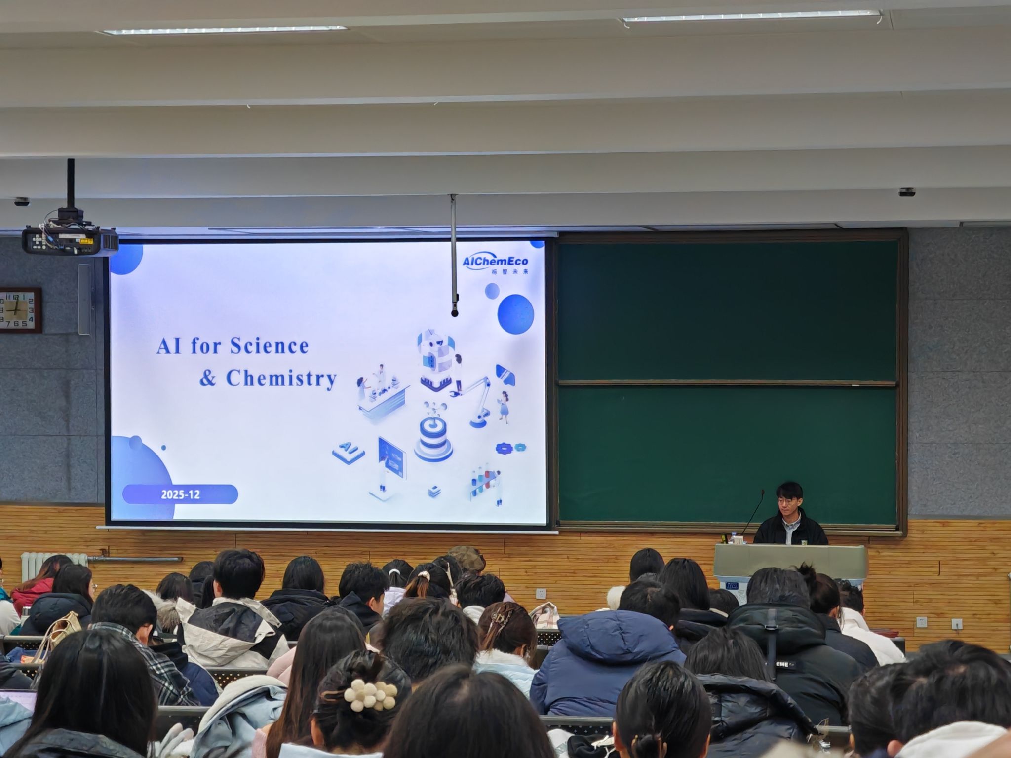 “AI+化学”前沿交叉课程正式开课。课程首讲特邀广州国家实验室助理研究员张崇焕博士主讲,内容涵盖AI for Science & Chemistry、化学数据与数据库、特征工程与描述符、数据可视化、正向预测和逆合成分析等六大模块,系统展示了人工智能技术发展以及如何深度赋能现代化学研究。本次课程采用“线下主场+线上开放”的教学形式,线下面向蘑菇视频