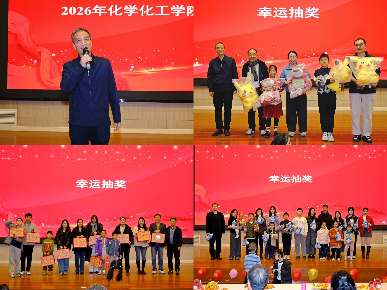 趣味互动环节欢声笑语不断,猜成语、“一块五”组队、猜猜看、物品收集等游戏各具趣味,教职工与家属踊跃参与、默契配合,在欢乐中拉近了距离、增进了情谊。抽奖环节激动人心,学院领导和教师代表为获奖教职工送上新年祝福。