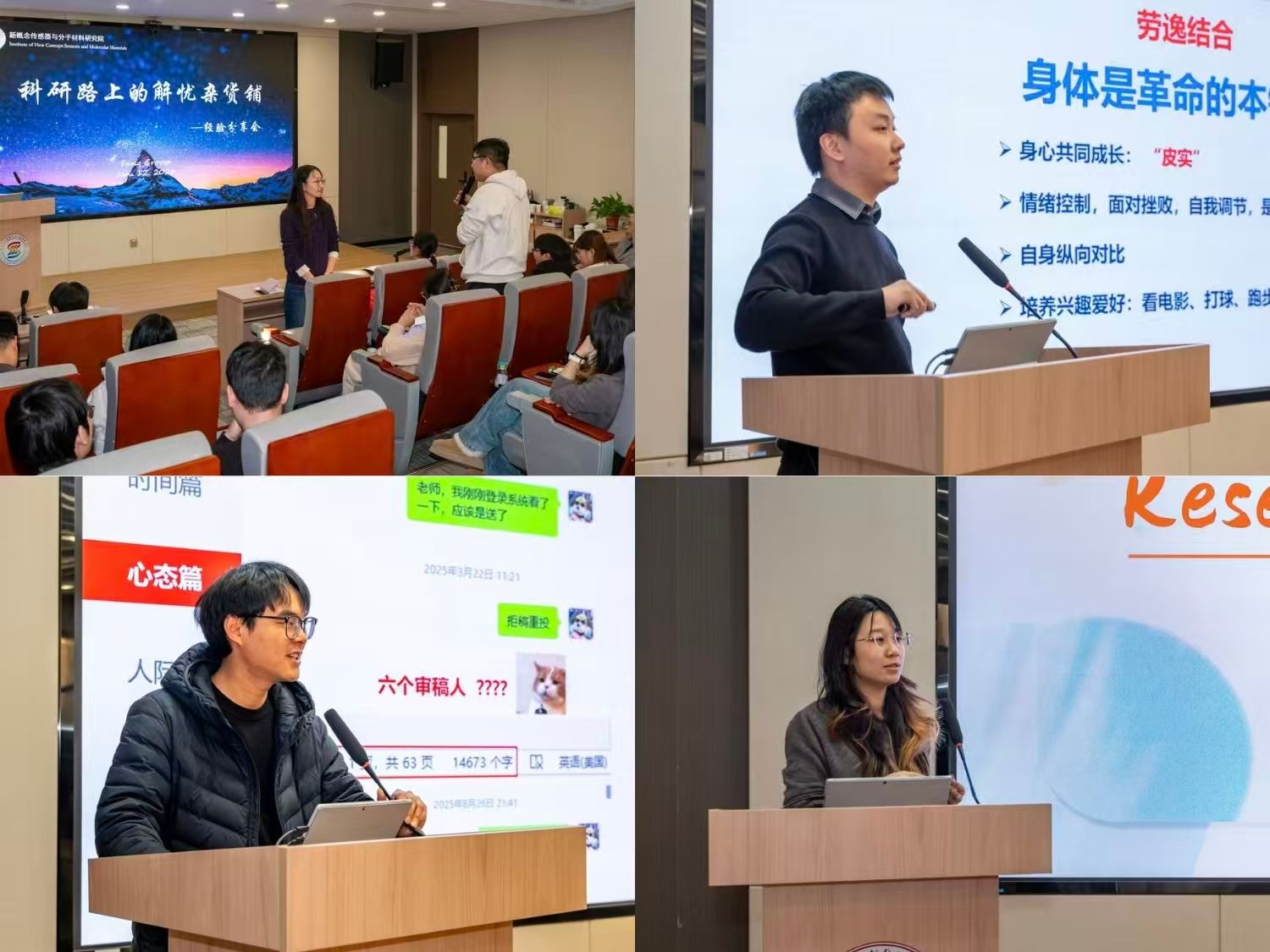 赵智豪老师回顾了自己硕博连读到博士后的科研经历,以及其中的心路历程,强调了前期深度思考、研究方向聚焦以及成果连续积累的重要性,提出科研应避免盲目试错、及时分析数据调整方案并注重效率。随后,他还分享了论文投稿经历以及求职和生活中遇到的困难和转机、选择与思考,指出应不断提升自身能力,注重身心成长,进行自身纵向对比。刘向泉博士以“科研之路,成长之思”为主题总结了自己的科研经历与体会。他认为科研应以问题驱动为核心,从实际应用与文献调研中寻找课题方向,从细微之处发现新机会;要学会时间管理,营造高效工作时段;面对困难与挫折,应保持心态,积极调整,并通过与导师、同学的沟通与合作予以化解。李晶博士围绕“科研与成长”主题,结合自身从硕士阶段到博士阶段的科研经历与成长体会,分享了她在科研训练、博士申请及博士初期适应过程中的思考与收获。