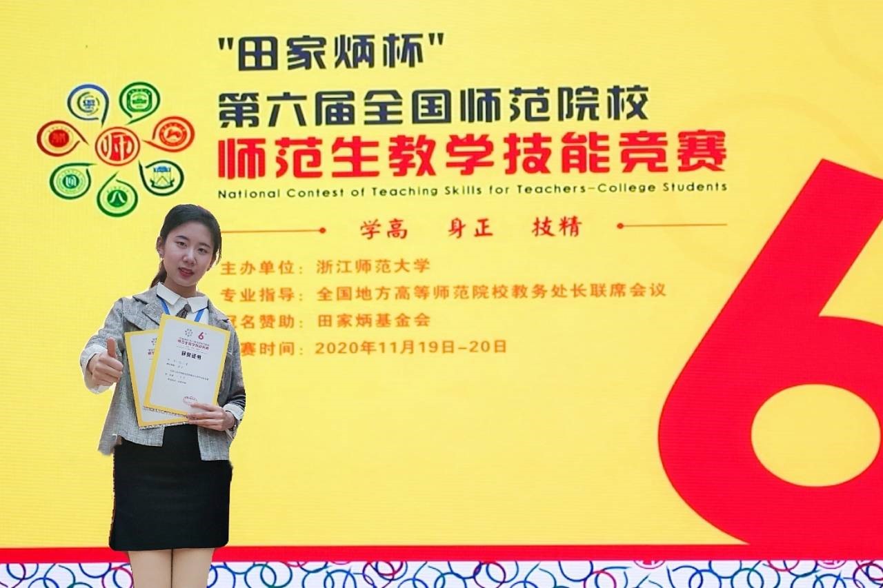 2020年11月19日-11月20日,“田家炳杯”第六届全国师范院校师范生教学技能竞赛决赛在浙江师范大学举行。本届赛事获得了“田家炳”基金会冠名赞助,并由全国地方高等师范院校教务处长联席会议专业指导,共有来自120所部属及地方师范大学的语文、数学、英语、物理、化学、生物六个学科共539名选手参赛,大赛每科设一等奖9名,二等奖19名,三等奖及优秀奖若干。比赛经过前期初赛线上微课的制作及本次现场决赛的教学设计、课件制作、即席演讲、模拟授课等环节的激烈角逐,代表我校参加此项赛事的4名选手,均取得了优异成绩。代表蘑菇视频