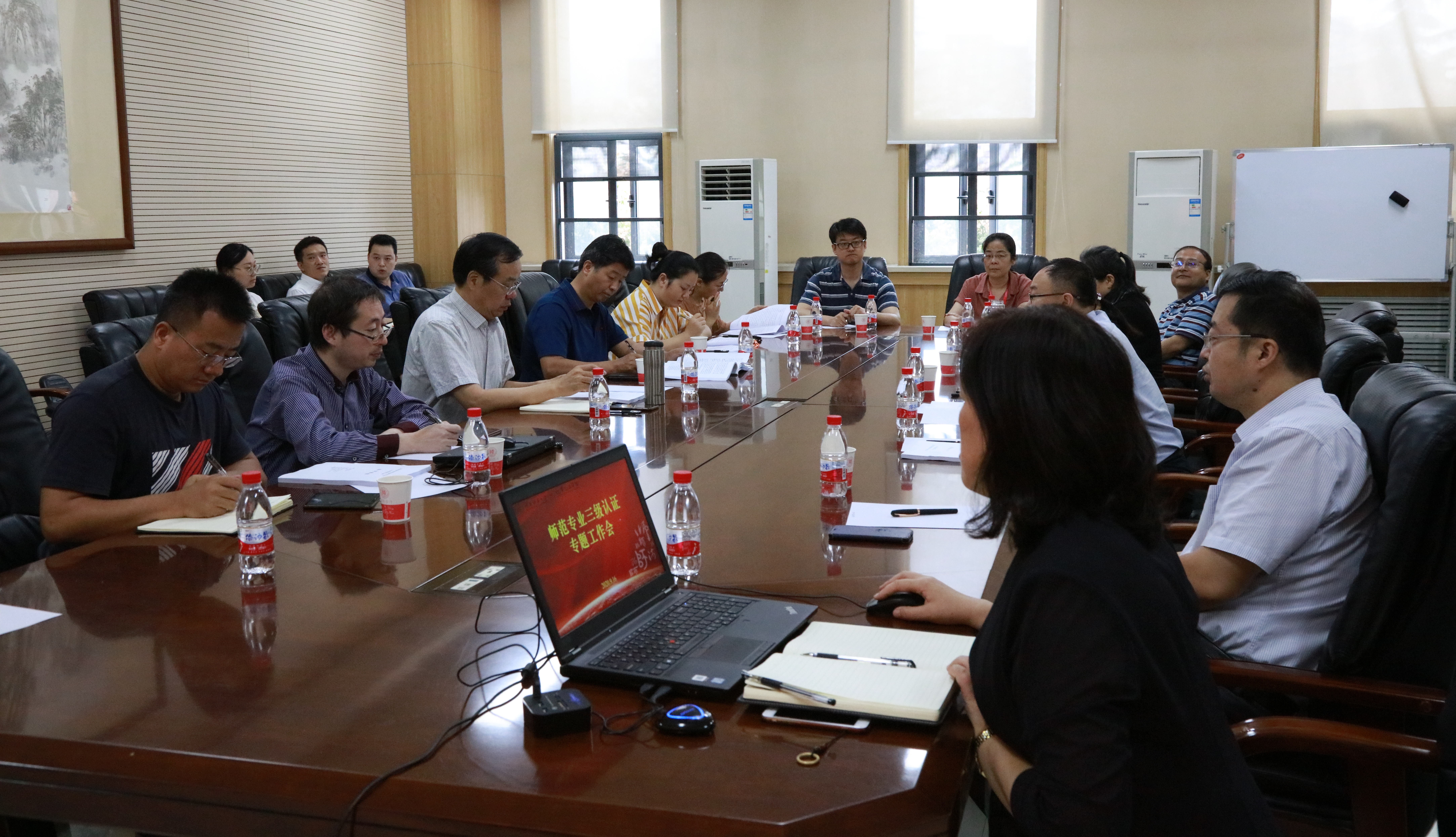 顺利通过三级认证。随后,副院长焦桓紧扣师范专业认证理念和指标体系,围绕自评报告撰写与修改、支撑材料准备、宣传动员、实验室整改情况以及专家进校前后的相关准备工作等6个方面向进行了汇报。