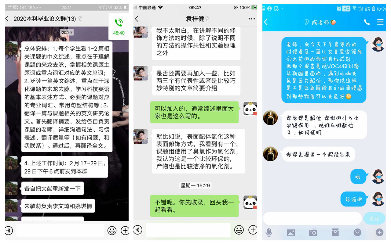 教师通过微信、QQ、语音通话等形式与学生取得联系,并通过安排文献查阅、研读、开题、文献翻译等工作对学生进行指导,推进本科毕业论文的进行。