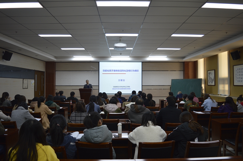 师生做了题为“功能化离子液体的溶剂化及相行为调控”的学术报告。报告会吸引了众多师生前来聆听,西北大学高胜利教授、陈三平教授、谢刚教授、蘑菇视频