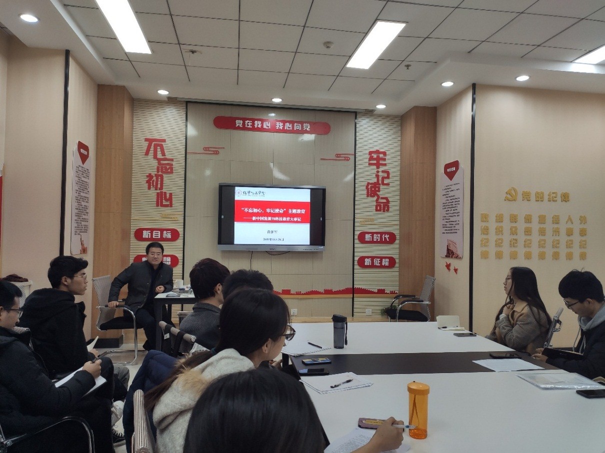 研究生化工党支部作题为“新中国发展70周年科技教育大事记”主题教育党课。研究生化工支部全体党员参加本次党课,会议由研究生化工党支部书记王颖同志主持。