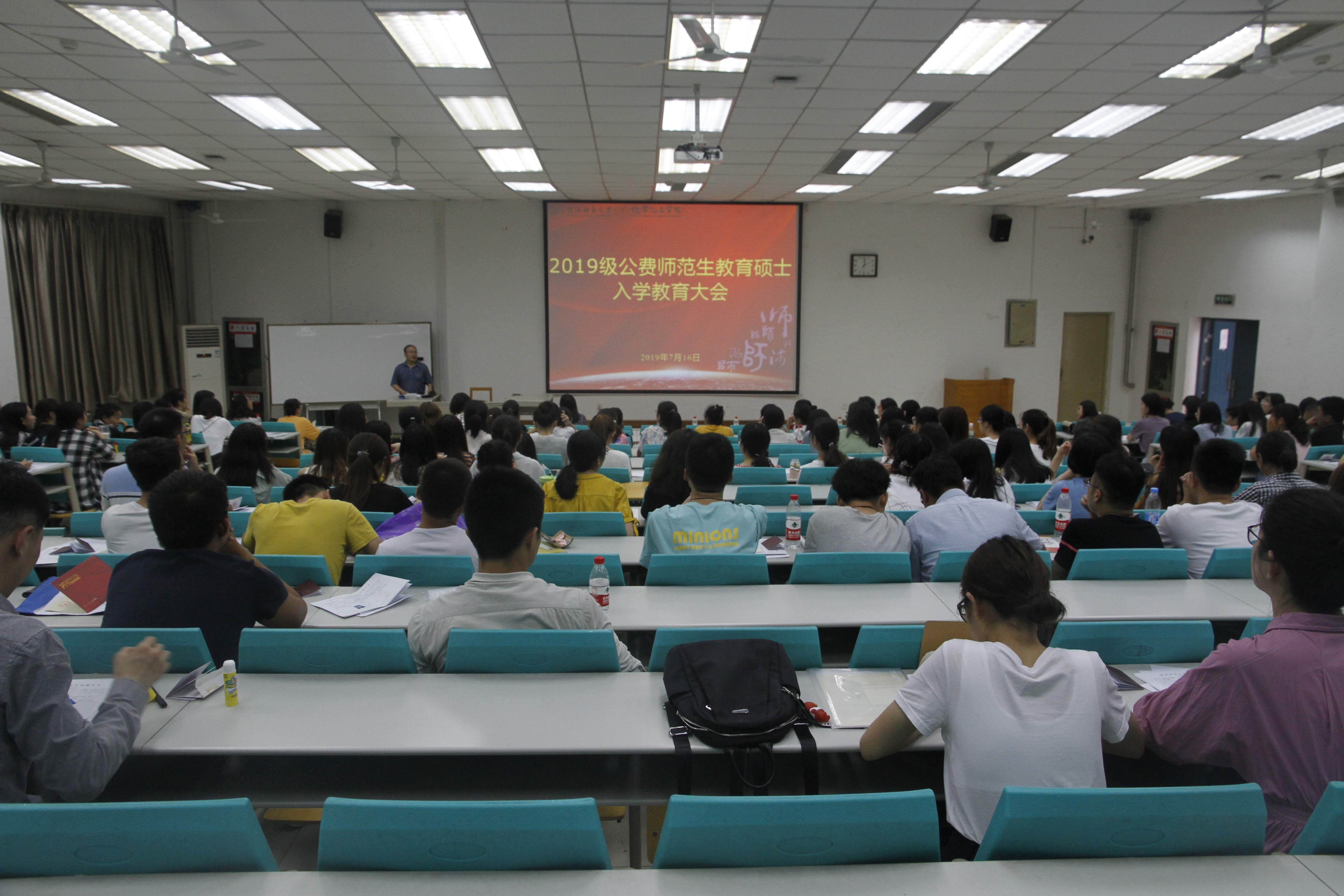 2019级免费师范生教育硕士入学教育大会在文津楼101报告厅举行。学院党委书记高玲香、党委副书记王晓、副院长丁立平、周青教授、研究生辅导员牟朝丽、公费师范生教育硕士秘书曹凯超以及2019级公费师范生教育硕士出席了本次会议,会议由学院党委副书记王晓主持。