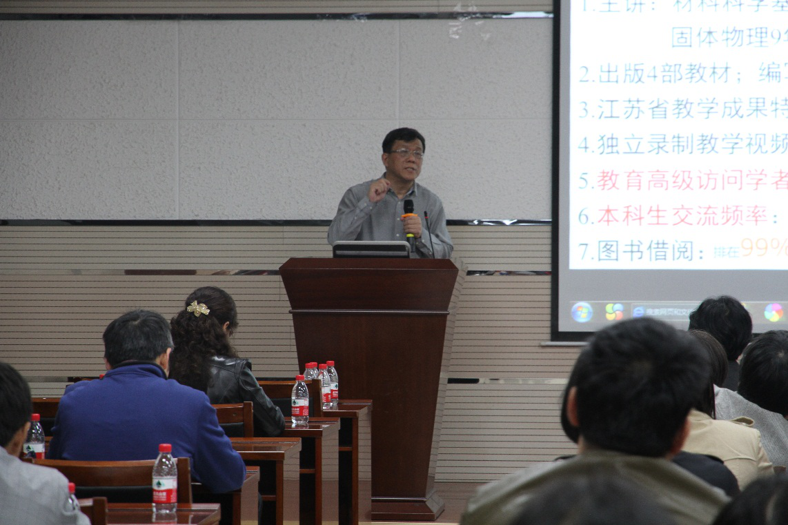 系列报告二:4月10日,学院邀请南京理工大学吴锵教授为全员教师作了题为“关于Gibbs相律这一经典问题的新认识与教学实践”的教学研究报告。吴锵教授分享了他几十年从事教学的心得体会:热爱教学,努力将教学工作做到极致。他鼓励青年教师正确处理好教学与科研的关系,在教学中结合课程特点加强教学方法和教学艺术的研究,不断提高教学质量。