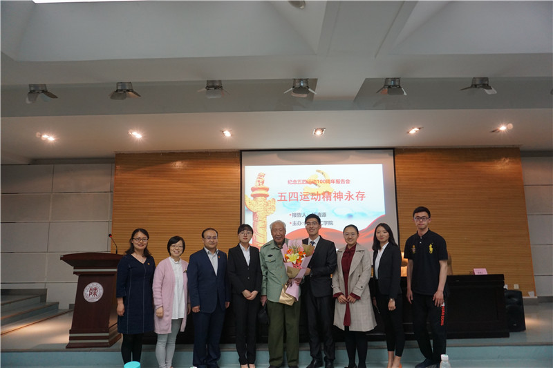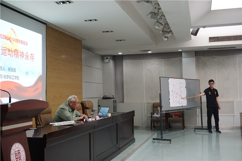 杨清源老师1950年参军,1951—1953年参加抗美援朝战争。立过功、评过先进,受到贺龙元帅及中央军委领导接见。后转业到陕西师大从事教学与领导工作,1990年退休后一直做关心下一代工作,曾多次被评为全国及陕西省教育系统先进个人。杨老虽已90岁高龄,但依然精神矍铄。报告中,杨老师采用大量详实的历史资料,围绕五四运动的起因经过、历史地位、精神内涵和新时代启示等方面做了深入讲解。报告中,学生们还通过主题朗诵、交流发言等形式表达自己对“五四精神”的纪念。