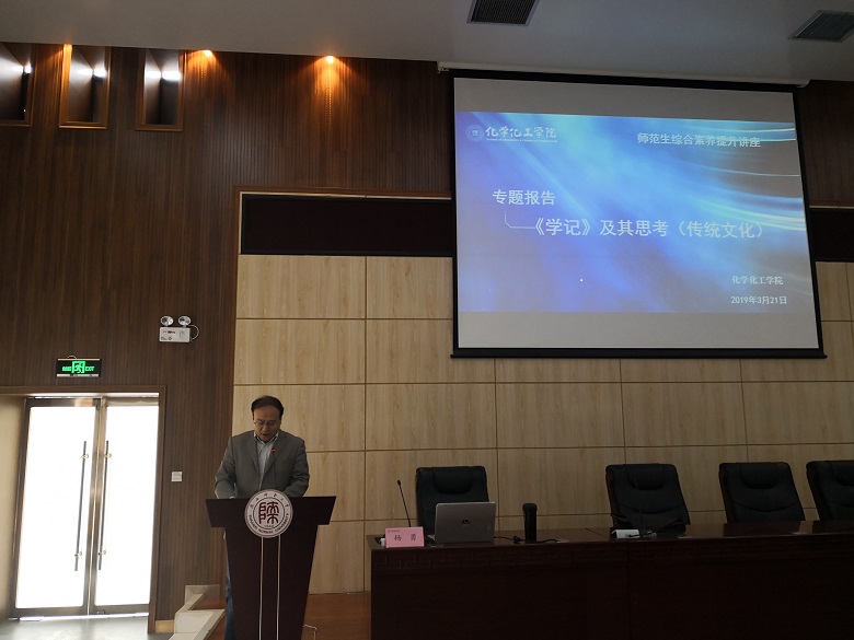 学生做了师范生综合素养提升之《< 学记>及其思考(传统文化)》专题讲座。讲座由学院党委副书记王晓主持。