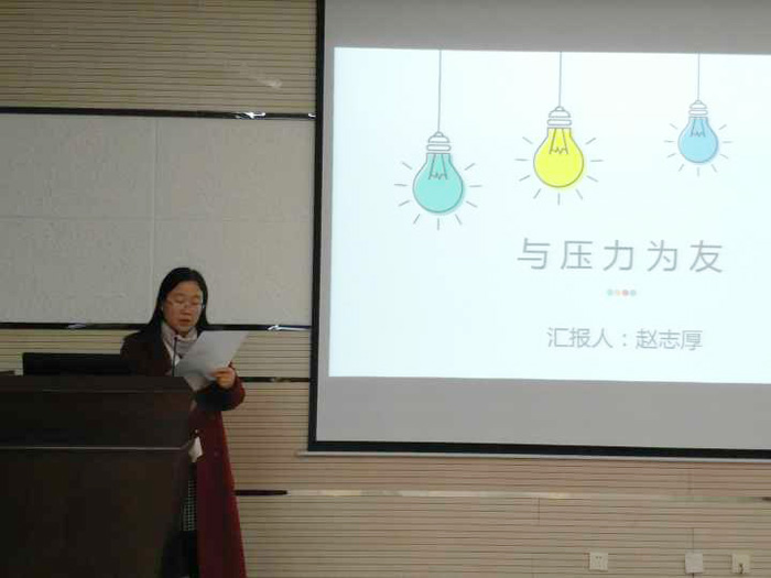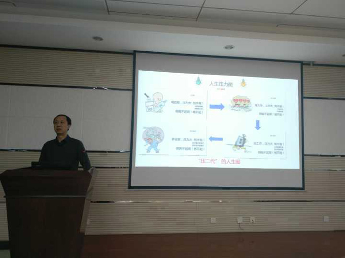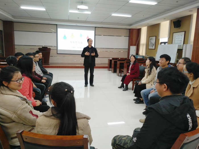 11月29 日下午, 蘑菇视频 邀请国家二级心理咨询师、西北大学化学与材料科学学院党委副书记赵志厚在致知楼1668报告厅进行一场题为“与压力为友”的心理健康讲座。蘑菇视频 部分博士生导师和博士生参加了本次讲座,讲座由蘑菇视频 副院长丁立平主持。