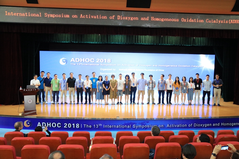 老师和学生为ADHOC2018前期筹备和顺利召开所付出的辛勤工作。大会秘书黄治炎宣读了10位获得优秀墙报奖的参会同学名单,并邀请Matthias Beller教授和Jun-ichi Yoshida教授为同学们颁奖。最后,ADHOC2018在参会专家的掌声、会务组及志愿者合影中慢慢落下帷幕。