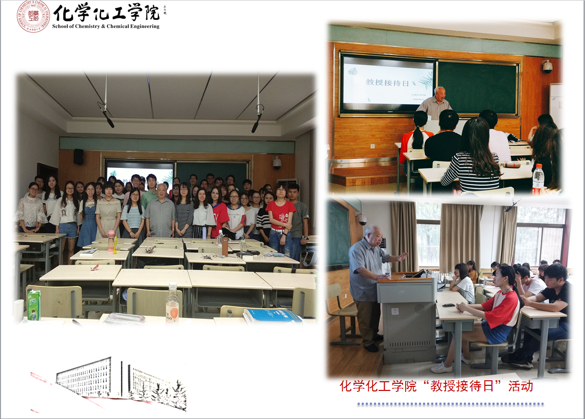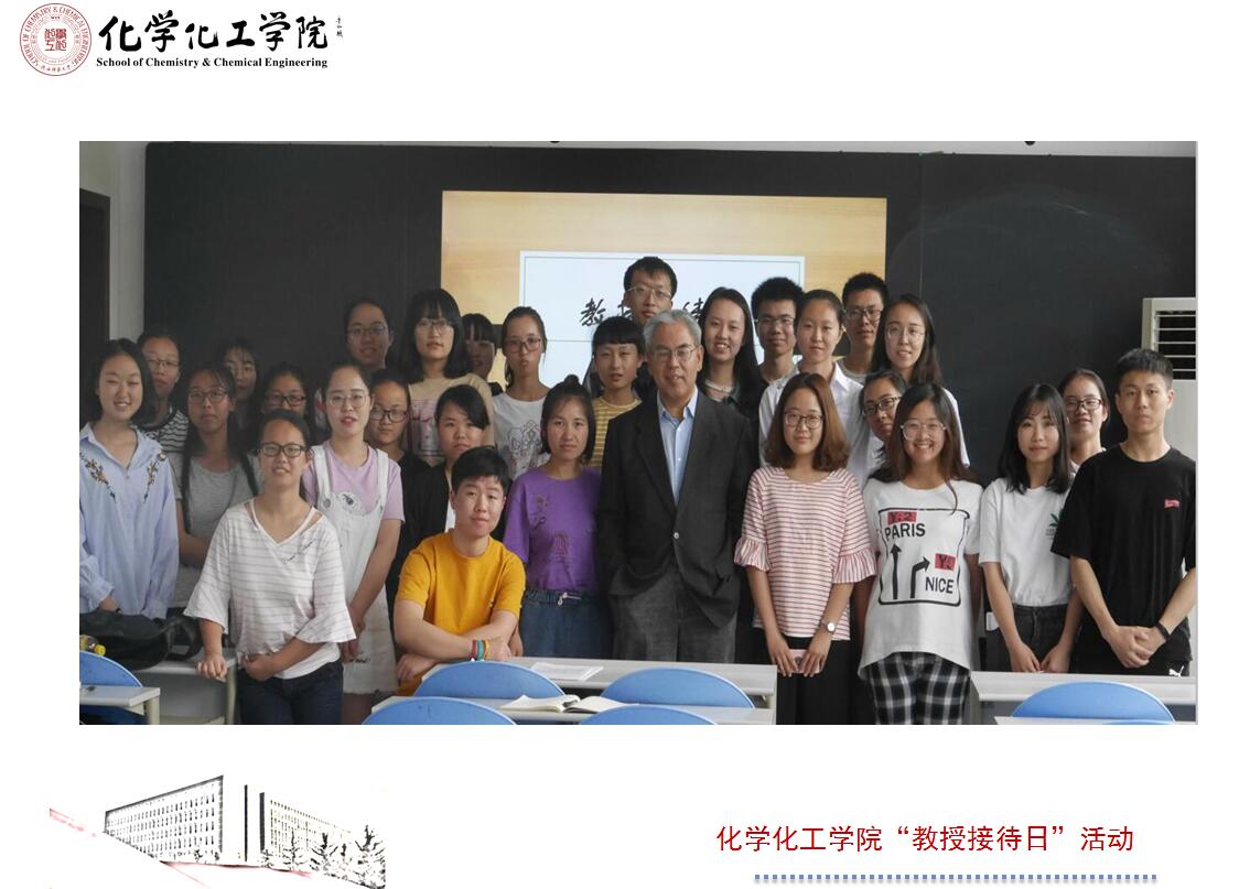 章竹君教授应邀参加了2017级化学二班举办的教授接待日活动。章教授首先讲到了“人生逐梦”的问题,他认为,每个人都要经历梦之大学,梦之人生;作为一名老师,应具备情怀、责任和担当的优秀品质,并鼓励同学们抓住机遇,学好英语,培养自己的创新精神,不断提高自身能力。