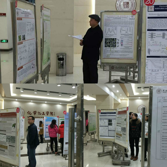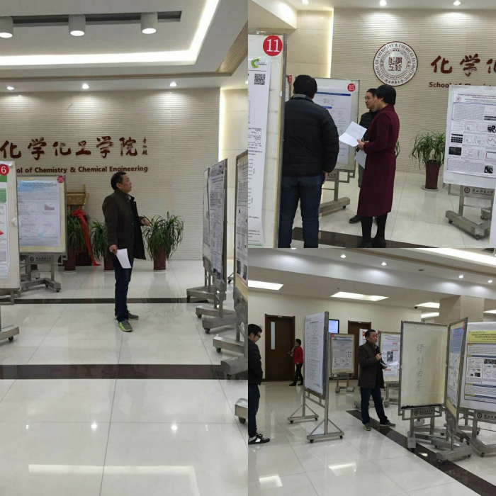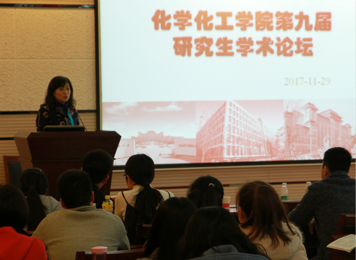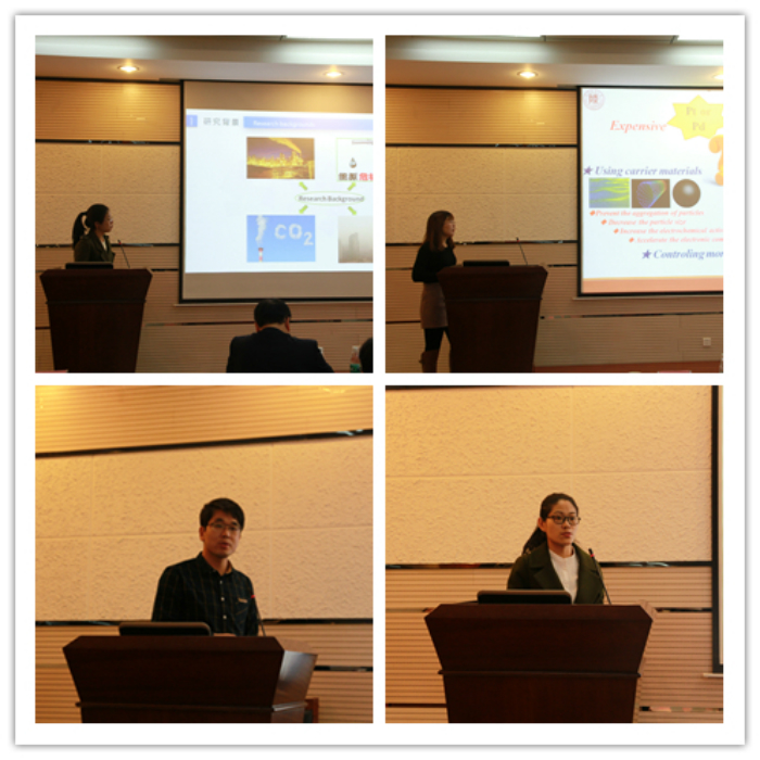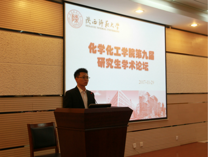 青年教师代表杨鹏教授和张伟副教授分别作了题为:《类淀粉样蛋白质组装及表界面改性》和《基于廉价金属的纳米材料与结构在电催化水分解中的应用》两场报告。两位老师的报告深入浅出,妙语连珠,让每位学生都受益匪浅,并对科学研究有了更高一层的认识。在提问互动环节,学生积极参与,就自己对报告内容的疑惑与老师进行了交流。随后,来自学院不同专业的12位获得2017年度国家奖学金的硕士研究生依次作了学术报告。大家围绕自己研究生期间的科研成果展开汇报,并在提问环节中和与会师生分享了学术道路中的体会和感悟。