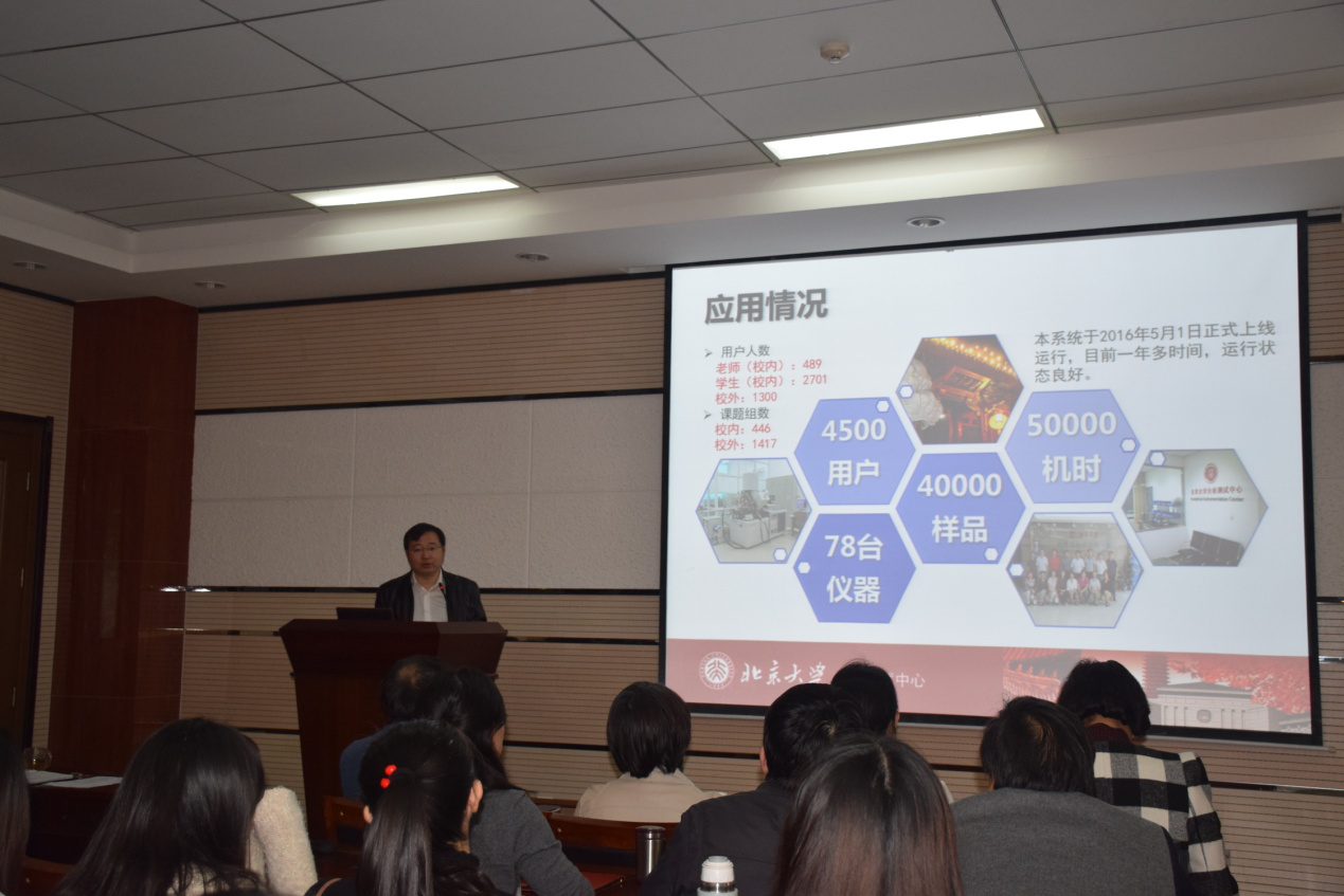 大型仪器平台,并在1568会议室进行座谈,座谈会由副院长李保新教授主持,实验室建设处处长郭建中教授、刘少恒科长以及中心大型仪器管理人员参加。北京大学分析测试中心谢景林教授就北京大学分析测试中心的管理体系、人力资源、仪器设备和特色服务四个方面进行了详细介绍,参加座谈的教师对自己感兴趣的问题进行了咨询与探讨。会后,大型仪器管理人员与北京大学测试中心对应仪器理人员又进行了一对一的交流,受益匪浅,表示今后一定以北京大学分析测试中心各位专家精湛的技术水平和崇高的敬业精神为标杆,提高大型仪器管理水平,更好地服务教学、科研和社会服务。