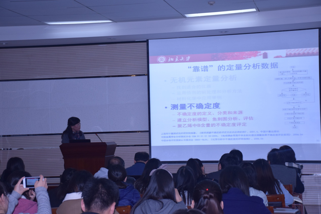 报告中,谢景林教授介绍了XPS的原理、功能、对科学研究的贡献、应用及(准)原位分析,并对光电子能谱技术的完善与发展提出了自己的见解。扶晖博士在报告中介绍了核磁共振原理、液体核磁共振与固体核磁共振及其应用。张莉博士以有趣的题目将大家的注意力引入元素分析的报告中,通过无机元素定量分析、测量不准确度两大部分向大家讲解了如何得到准确度高的数据。鞠晶博士则向大家介绍了扫描电镜的相关知识。周江教授在报告中展示了北京大学分析测试中心的信息化建设,并列举了一系列质谱在最新科研成果中的应用实例。整场报告深入浅出,蘑菇视频