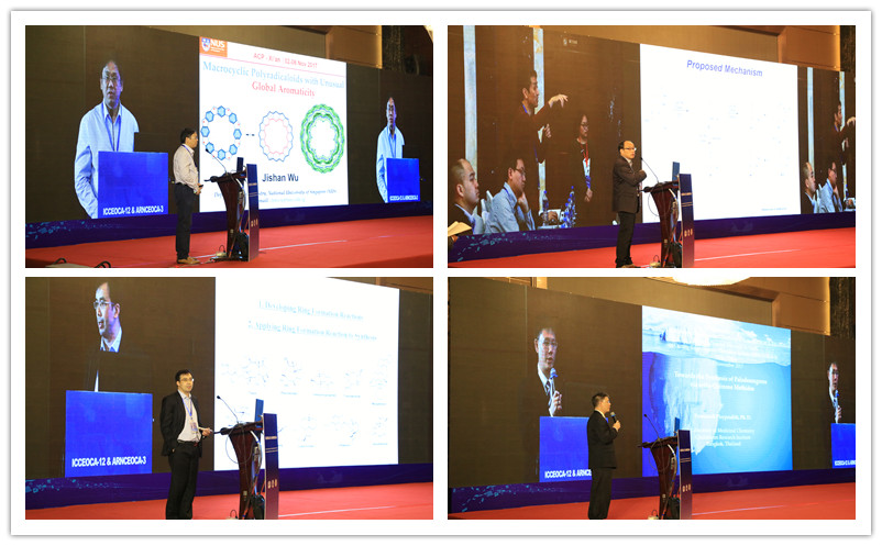 2017年11月4日,来自新加坡国立大学吴继善教授、韩国Chonnam National University的Sunwoo Lee教授、北京大学余志祥教授、泰国Chulabhorn Graduate Institute的Poonsakdi Ploypradith教授、台湾国立中山大学的吴明忠教授从有机方法学、环加成反应、全合成等方面将有机化学的不同领域的最新研究成果呈现给与会代表,并和与会代表进行了深入的讨论。我校蘑菇视频 的王涛博士作了一分钟报告和墙报展示。