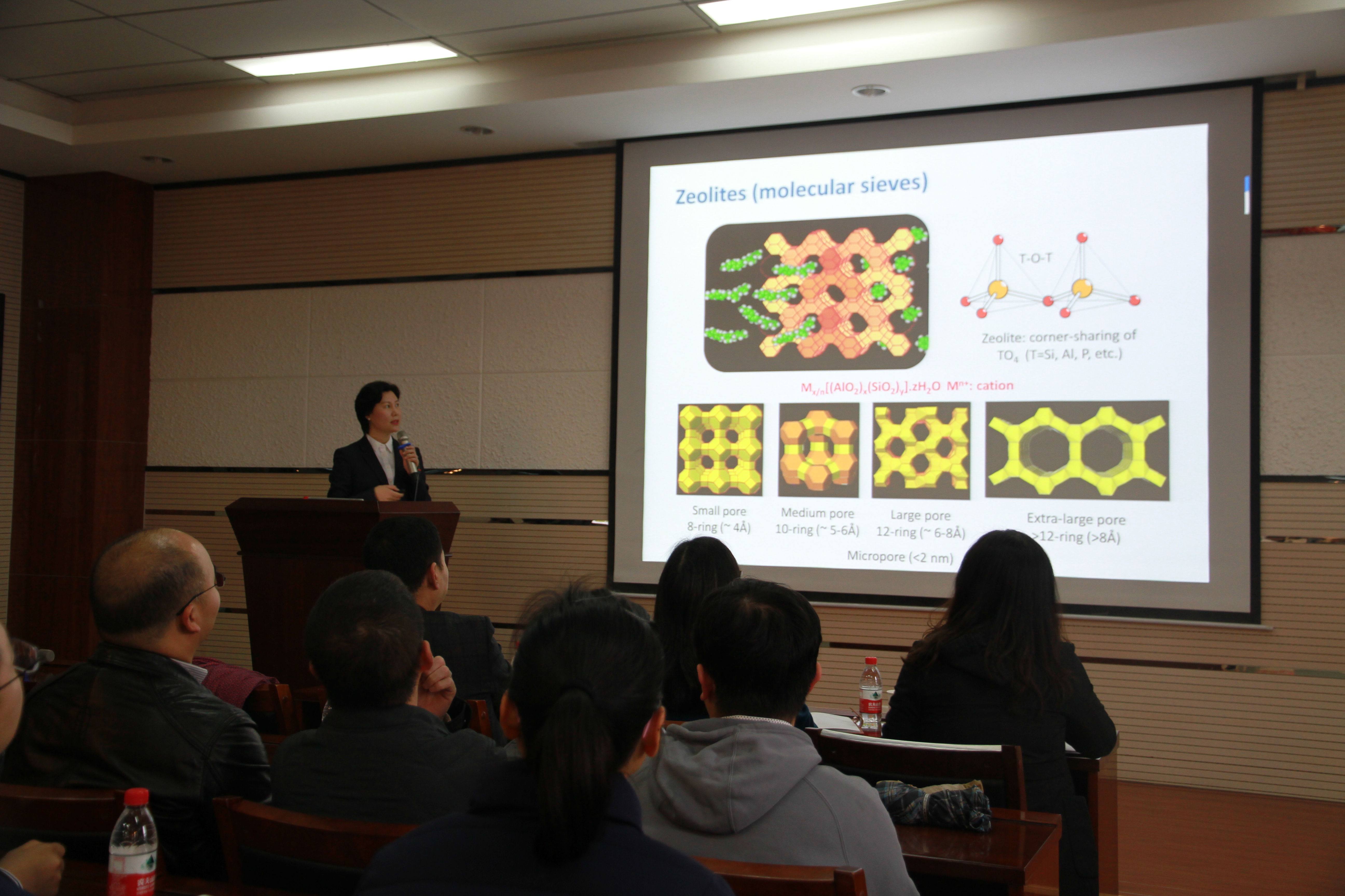 师生作了题为“分子筛纳米孔材料的研究进展及新应用”的精彩报告。白俊峰教授、高玲香教授、薛东教授、焦桓教授、丁书江教授、刘志宏教授、张静教授、曹睿教授、翟全国教授、薛东旭副教授、李淑妮副教授、郑浩全副教授、顾泉副教授、王艳艳博士等教师及相关专业博士生、研究生、本科生聆听了本次报告。报告会由白俊峰教授主持。