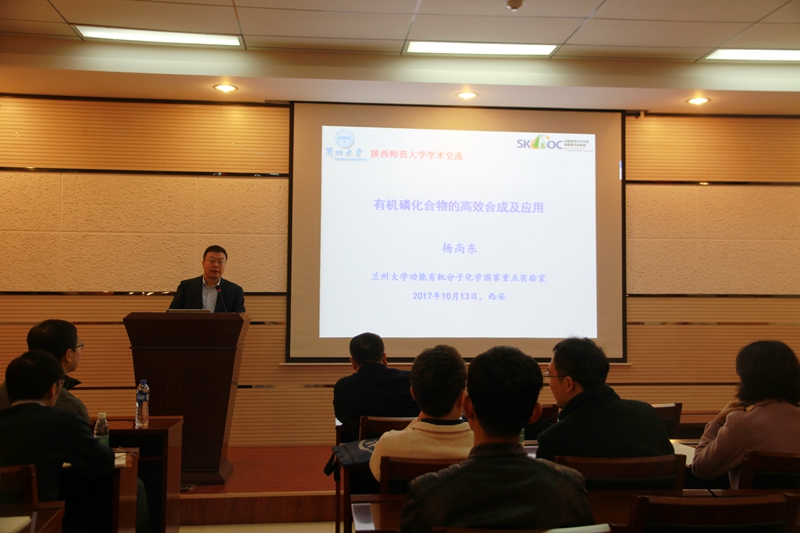 师生作了题为“有机磷化合物的高效合成及应用”的精彩报告。薛东教授、石先莹教授、王超教授、李超群教授、黄治炎副教授、李高强副教授、杨明瑜副教授、赵玉明副教授、王涛博士、雷海涛博士、李刚博士等教师及相关专业研究生、本科生聆听报告。报告会由薛东教授主持。