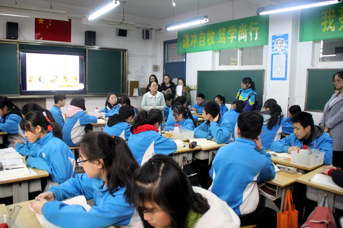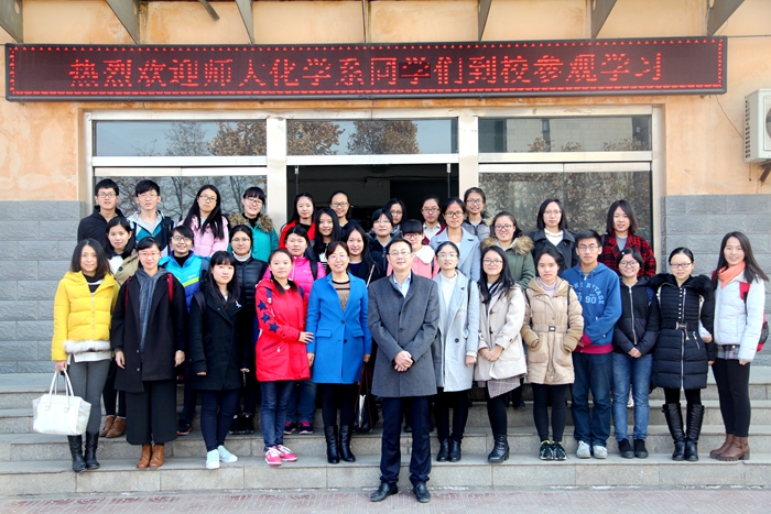 组织2015级化学卓越教师实验班于2016年12月16日前往西安大华中学进行交流学习。2015级卓越班项目主任陈亚芍教授、学院张蕾老师、辅导员李盼宁老师以及2015级卓越班全体同学参加了本次活动。大华中学教导主任郭健首先对各位老师和同学的到来表示热烈欢迎,随后,郭主任简短地介绍了大华中学的办学理念、办学特色及设施概况,让到场师生对大华中学有了整体上的认识。接着,在校方的安排下,师生们观摩了一节化学课——初三(1)班 “二氧化碳的性质和制法”。该课程讲授以学生自我探究为主,教师指导为辅。教师课前分发导学案,学生进行自主学习,课上结合实验进行探究,从而加深对知识的理解与掌握。
