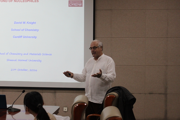 报告中,David W. Knight教授详细介绍了烯烃和炔烃成环中所用的亲核试剂以及金属催化剂,并分析了不同催化剂的催化作用和机理。增强了广大师生对有机合成、催化机理方面的了解及探索热情,同时开拓了同学们的眼界。