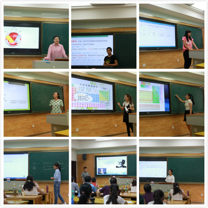 报告会开始,焦桓副院长做了报告会的开幕讲话,并向全体师生简要说明了此次报告会的流程与目的。报告会上,同学们展开了“从元素化学到科技生活”、“镧系与锕系元素”、“如诗如画的实验”等近30场内容丰富多彩的报告。在互动交流环节,报告者对老师们的提问从容作答,报告会现场气氛轻松活跃。报告会持续了近8个小时,报告会最后,几位评委老师做了点评,从同学们报告内容的选择、知识讲解的科学性、展示方法和手段、教育理念的体现、PPT制作技巧等方面给予了概括性点评,对同学们展示出的知识掌握程度及讲解能力给予了极大鼓励;同时,对报告方式、内容及题目选取等方面存在的不足提出了很多建设性意见。高玲香书记在总结发言中指出,经过前期知识的积累和暑期的准备,同学们普遍展现出了一定的讲授能力。希望同学们在今后的学习中,注重科学素养训练,不断加强自己的综合能力,为未来成为一名卓越教师打好基础。