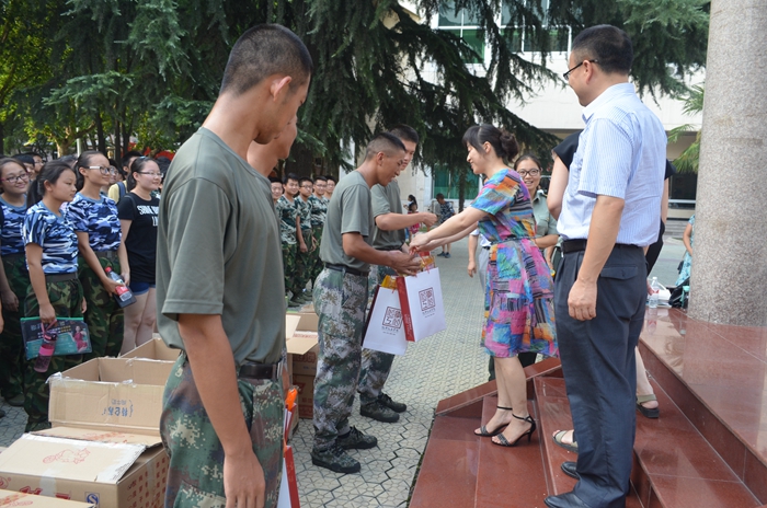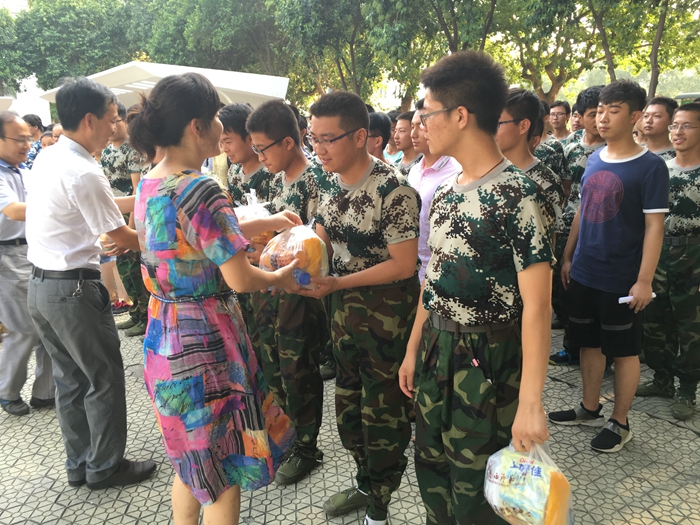 学生军训任务的教官与带队干部,受到了大家的热烈欢迎。