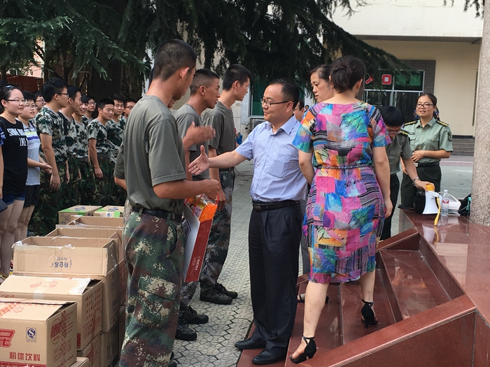慰问过程中,薛东院长发表了热情洋溢的讲话。他指出,军训是大学第一课,是一种特殊的集体生活,通过军训能够帮助大家快速结交新的朋友,培养良好的生活习惯,促使大家更快适应大学生活。他谈到,今年军训期间的天气异常炎热,大家迎难而上,在身体素质、心理素质、组织性和纪律性各方面经受了考验并取得了较大的进步。目前军训时间过半,薛东院长鼓励同学们继续保持昂扬的斗志和刻苦的精神,力争在军训汇演中取得好成绩。随后,领导和老师们向全体参训学员发放了慰问品,同学们深受鼓舞,决心以更加饱满的热情投入训练,掌握更多的军事理论知识和军事技能,磨练自己的意志品质,不辜负领导和老师们的殷切期望。高玲香书记还特别询问了学生对新环境的适应情况,并叮嘱带队的辅导员老师们要更多关注特殊学生的身体和心理状况。