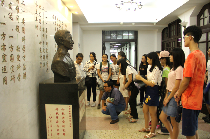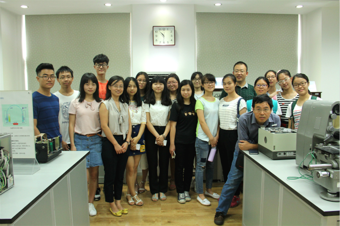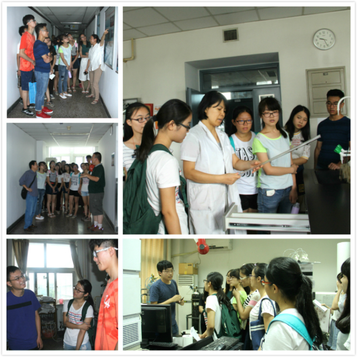 活动第一站——北京大学化学与分子工程学院。首先,实验中心副主任高珍老师带领同学们参观了北京大学化学基础实验教学中心和化学实验示教中心,每到一处,均有专业老师详细讲解。参观过程中,高主任着重对北大本科生化学实验课程体系设置、培养目标及创新形式等内容进行了阐述,并对四大基础化学实验室及常用仪器纷纷做了介绍。在化学实验示教中心,同学们对陈列的不同年代的天平、剖开的测试分析仪器、“编织”的化学大分子模型等产生了浓厚的兴趣,纷纷表示通过实物参观,对一些先前只能在书本上看到的仪器及内部构造有了更直观的印象。最后,同学们参观了北京大学化学与分子工程学院邵元华教授、刘虎威教授及李娜教授的实验室,了解了他们在“软界面电分析化学”、“生物分离与检测”、“生化分析、发光测定方法”等领域做出的突出贡献。参观活动在同学们与北大化学院研究生的热烈讨论中结束。