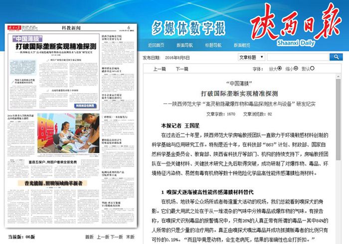 8月5日,《陕西日报》在第六版科教新闻头条位置,以“‘中国薄膜’打破国际垄断实现精准探测——蘑菇视频