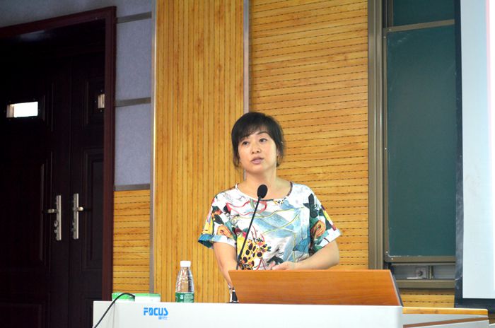 报告会上,高玲香教授用通俗易懂的语言,旁征博引,围绕“学院文化与学院精神、大学本科教育的主旨与内涵、大学四年学业规划与未来职业规划”三个主题与新生进行了深入交流。高玲香教授首先对2016级新同学表示欢迎和祝贺,并鼓励大家克服困难,学会独立,尽快适应大学的学习和生活。接着,她从历史沿革、学科优势与特色、师资队伍与教学、重大科研成果、学术交流与合作、本科生培养等方面向同学们介绍了学院的基本概况。通过讲解,同学们了解到经过几代化学人坚持不懈的努力,学院已在西北地区乃至全国具有一定的学科优势和影响力,这更加坚定了大家选择师大、选择化学的决心。高玲香教授勉励同学们要让大学成为自己人生成长的阶梯,要对自己的人生和理想进行思考和规划,并为之付出行动,不虚度大学四年时光;要提高自主学习的能力,努力适应大学的教学方式,选择适合自己的学习方法,培养良好的学习习惯。高书记还重点向同学们展示了学院的形象标识,解读了学院院徽、教风和学风的内涵,鼓励大家在今后的学习生活中用心感受“包容、务实、创新、精进”的学院精神,并把学院的文化精髓内化为指引自身成长发展的准则,在未来的大学生活中及早规划,通过脚踏实地的奋斗,实现自己的人生梦想。