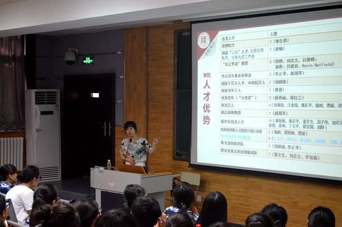 2016级新生首场入学教育报告会在雁塔校区教学五楼5104教室举行。学院党委书记高玲香教授应邀为全体新生做了题为“识读学院文化,科学规划未来”的报告。学院党委副书记王启明、2016级辅导员龙卓华参加了报告会。报告会由王启明主持。