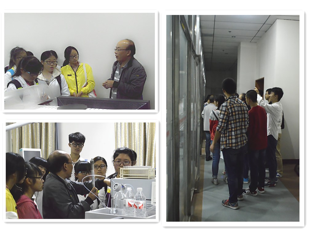 各重点实验室的老师及研究生师兄师姐从方向成果、设备仪器等方面对实验室的具体情况进行详细的介绍。在参观大型仪器平台期间,刘凯强和严向阳两位老师向同学们详细介绍并耐心演示了仪器的使用方法;有机化学实验室张琦老师在实验室迎接了同学们,对同学们的到来表示欢迎,与研究生一起为同学详细地介绍了本课题组的研究方向及设备;房喻老师实验室的研究生先向同学们介绍了光子鼻与分子材料研究团队的团队组成、研究方向和成果等,又带领同学们参观了实验室中“重量级”仪器设备,并对其功能和使用方法进行了详细讲解;在参观高玲香老师实验室期间,研究生师姐除了给大家详细讲解外还现场演示了仪器设备的使用;进入刘昭铁老师课题组实验室后,陈建刚老师亲自为同学们讲解了应用化学及化学工程方面的研究方法及仪器设备;参观吕家根老师实验标本室期间,师姐着重介绍了仪器解剖、标本制作等探索过程及理念;曹睿老师实验室的师兄风趣幽默地为同学们介绍了本实验室的研究内容及实验仪器,无形中拉近了同学们与研究生学长之间的距离。