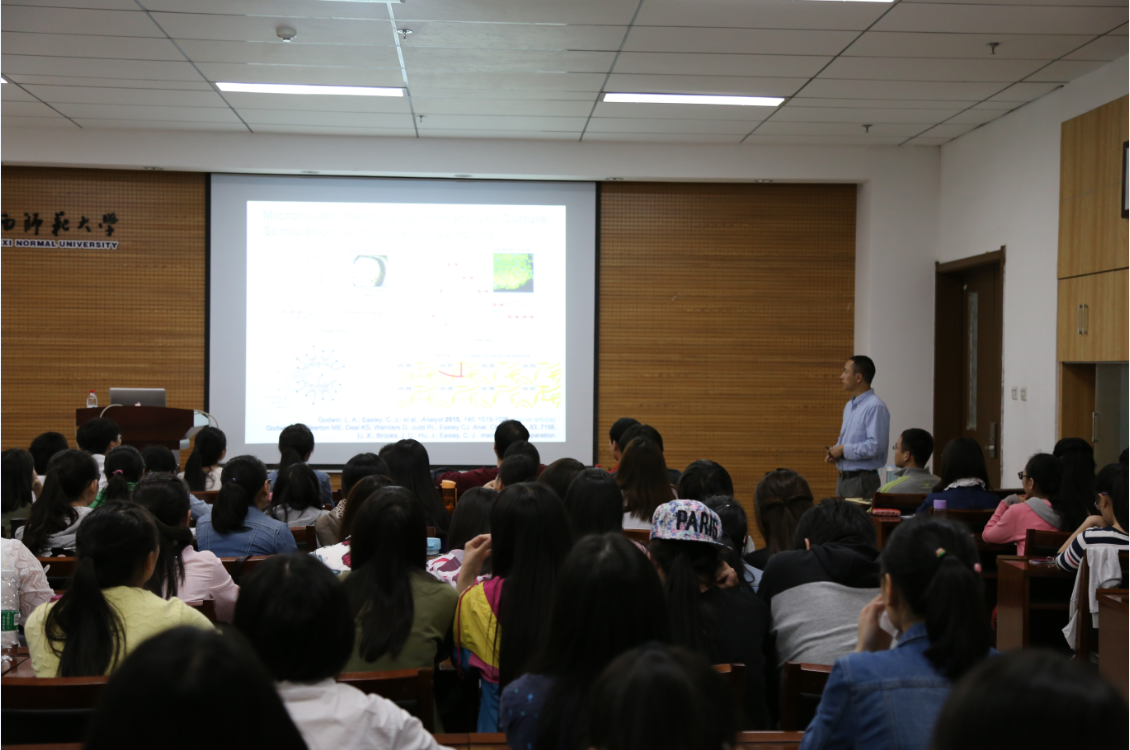 陈明博士先后在美国布朗大学和斯克里普斯研究所攻读研究生,后进入加州大学伯克利分校从事博士后研究工作,现供职于美国奥本大学。报告会上,陈明博士分别从确立志向、艰苦求学、乐享奋斗三个方面讲述了其在美国求学深造的艰辛与快乐。他用一个个发生在自己身上的生动故事让同学们领悟到,在选择人生的努力方向时,只要确定了最能使自身品格和长处得到充分发挥的目标,并且锲而不舍地走下去,终会获得成功。陈明博士结合美国高校的奖学金制度,重点介绍了美国大学的学习方式和科研习惯等,他颇有感触地谈到,通过出国留学的历练,自己的专业知识及科研能力不但得到了一定程度的提高,而且培养了积极乐观的心态和全面分析问题、处理问题的能力。陈明博士强调,出国留学必须建立在深思熟虑的基础上,弄清楚自己的理想目标并且一定要做好全方位的准备。陈明博士鼓励同学们加强专业学习,多了解化学领域的前沿发展,不断拓展专业选择视野,及早确立考研志向;考研期间要学会调节心理压力,要劳逸结合,要学会坚持。互动环节中,同学们踊跃提问,陈明博士耐心地解答了同学们在出国留学和考研深造方面的困惑和问题,开阔了同学们的视野,激发了同学出国留学的热情。