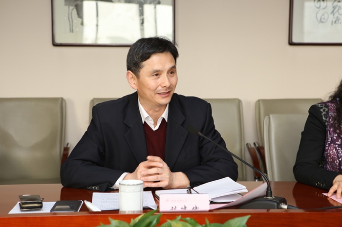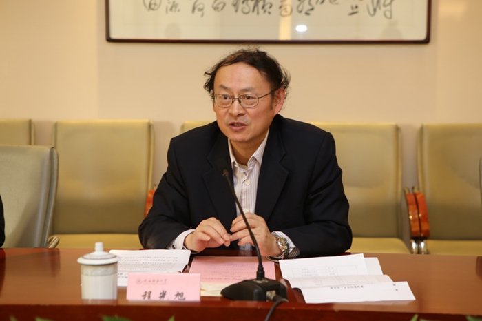 程光旭校长代表学校对王作弟董事长一行表示欢迎,对其捐资建设“创新药物研究中心”表示感谢。他简要介绍了学校办学历史、学科建设、科学研究、学生规模和办学特色。程光旭指出,陕西师大人文社科底蕴深厚、优势明显;理工科人才聚集、势头强劲,化学、材料科学、工程学和农业科学4个学科进入ESI全球排名前1%。近年来,学校十分重视政产学研合作。通过合作,探索出了在人才培养、科学研究、持续发展方面的经验和模式,既促进了企业科研人员参与研发,又拓宽了学生就业渠道,实现了双赢。他希望研究中心要以创新为核心,充分利用双方年轻团队的智力和市场优势,学校做前期研发,企业做生产和市场,力争做出特色,做出成绩;希望王作弟董事长持续关注支持研究中心的发展,进一步深化和拓宽合作领域。
