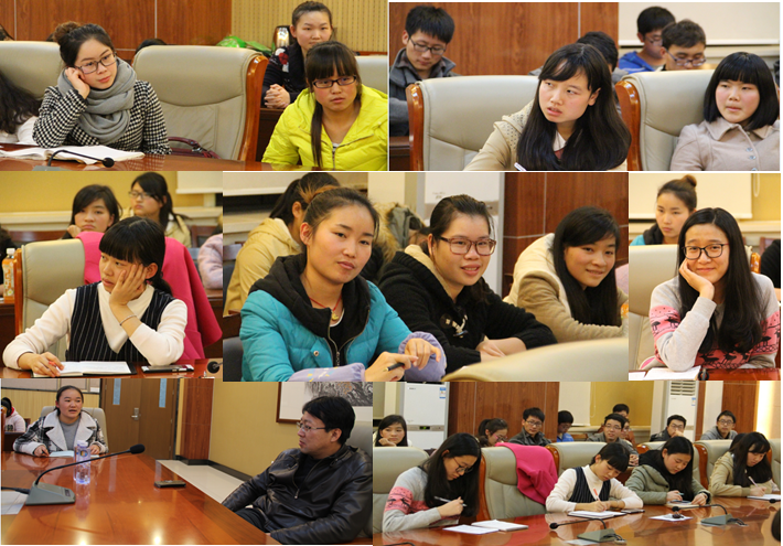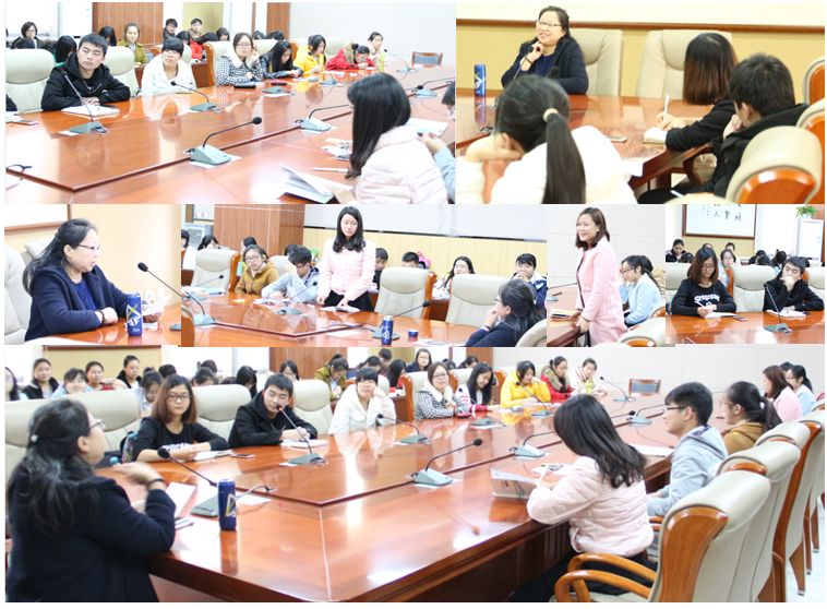 2013级化学二班的教授接待日活动。周青教授首先通过比较课堂结构,向同学们介绍了翻转课堂以及翻转课堂与传统课堂的差异。接着,周青教授对当前如何为成为一名教师做准备,和同学们进行了交流:一方面,要学好专业知识,加深对专业的认识,并鼓励大家通过参加讲课类的比赛,锻炼和发展自己,为成为一名合格教师做准备;另一方面,她希望大家适当参与课外活动,应该多在生活中进行反思,学会从多角度看问题,并提高与他人交往时的包容能力,减缓焦虑,享受大学生活;其次,周青教授建议大家要保持一个良好的体魄。在教师与学生和家长如何相处方面,周青教授强调,作为老师,首先应尊重学生,像如对于学生早恋的问题,一定要在保护学生自尊的前提下,再向学生说明问题,进行思想工作;而与家长相处时,则应该在了解孩子的基础上积极沟通,促进交流。随后,对如何提高学生学习积极性的问题,周青教授指出,讲清楚课程,让学生听懂,既是提高学生学习积极性的有效手段,同时也是提高学生学习成绩的根本。最后,周青教授和大家分享了她的学习经历以及化学对她的影响,她说,“化学训练了我的思维,教会我不要用感觉去判断事物”,同时以自己的工作和生活经历告诉同学们,人生的道路不一定要按着想象的模子走,同时还要取决于机遇和社会潮流,因此,周青教授希望大家既要坚持自己的梦想,也要抓住机会。