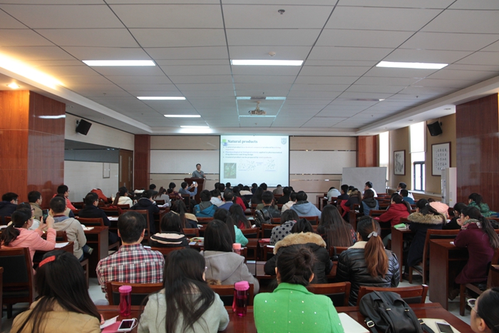 报告中,姚祝军教授简介,高效的实现了天然产物chlorofusin的全合成,同时在全合成过程中发展并发现了有用的合成子Isochromenylium Tetrafluoroborates,并且成功拓展到有机方法学的研究中。报告会后,姚祝军教授还与在场师生分享了自己在科研和培养研究生过程中的故事,激励同学们勇攀高峰、大胆创新。报告会在热烈的气氛中圆满结束。