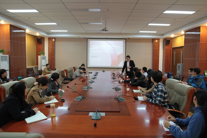 徐博士首先给在座的老师和同学们介绍了wiley集团旗下材料科学相关期刊的整体情况,使在场师生对这些国际著名的研究期刊有了更深入的了解。接着,徐博士根据自己的工作经验,介绍了一篇论文从投稿到最后被接收发表的整个规范流程,他着重强调了论文投稿过程中各阶段需要注意的相关事项。从论文的书写,cover letter的撰写,目标期刊的选择等方面出发,徐博士详尽地解答了在场师生心中的疑虑和困惑。同时,徐博士就避免科研论文的抄袭嫌疑为大家分享了自己的经验和体会。