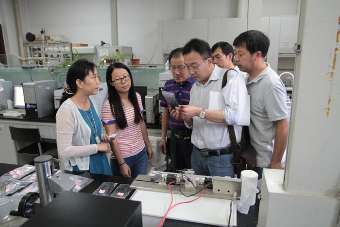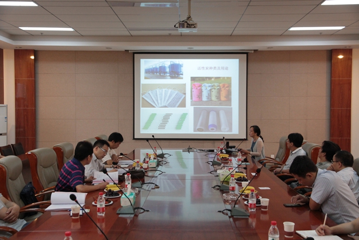 陈新兵副处长首先对中石化洛阳分公司专家的到来表示欢迎;刘洛新副处长提出了项目的验收要求;刘春玲教授就项目背景、实验室小试研究结果、合同指标完成情况和中试实验方案向专家组进行了详细介绍。专家组认真听取了汇报,详细审阅了验收材料,并和刘春玲教授、董文生教授深入讨论了实验原理、技术细节、中试技术方案,现场考察了脱油沥青预处理、活性炭成型、预氧化、炭化、活化等实验室小试装置和研制成功的颗粒状活性炭。对项目成果给予了充分肯定。