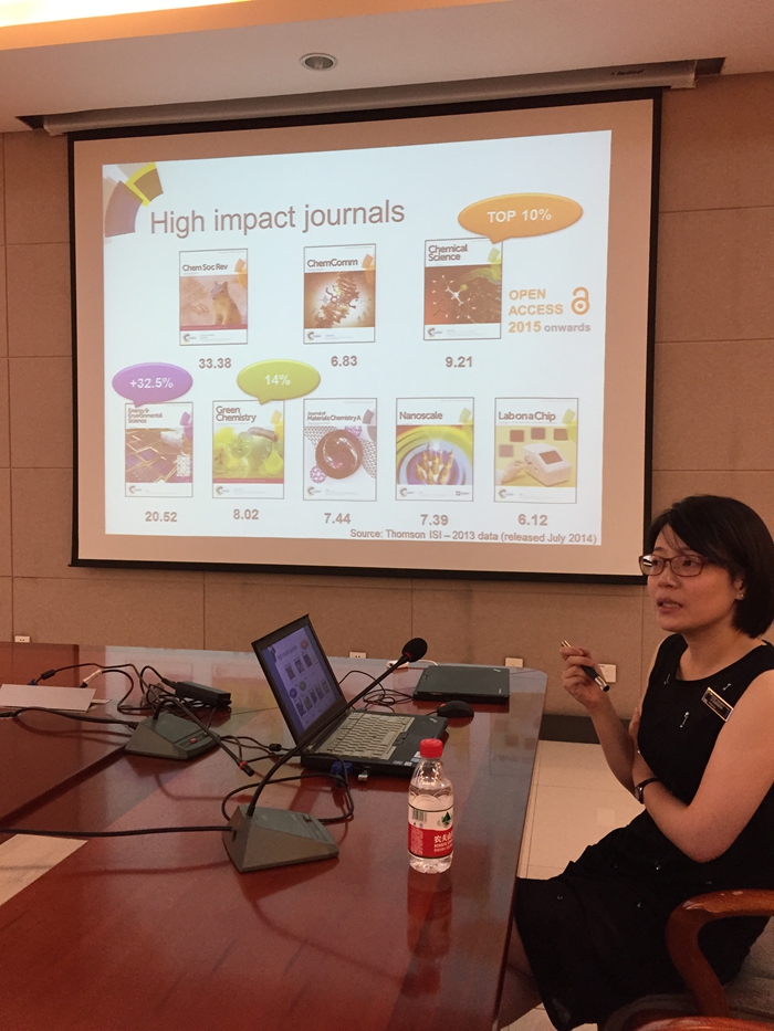 ,并作了题为“RSC Publishing for China”的精彩报告。报告会由吕家根教授主持,张伟强副教授、胡蓉蓉副教授、刘成辉副教授、孙华明实验师等教师及研究生参加了报告会。