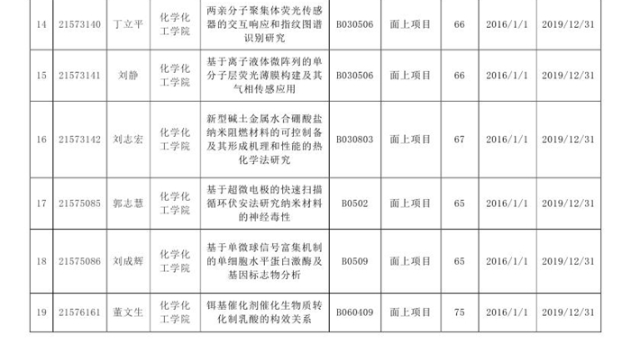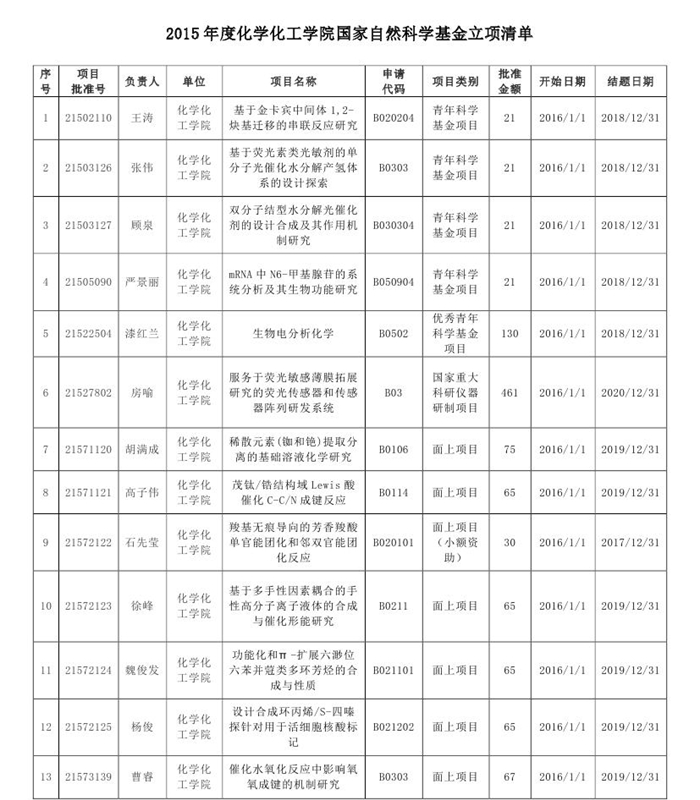 19个项目获得资助,资助直接经费1511万元。其中,国家重大科研仪器研制项目1项(全校唯一),资助直接经费461万元,优秀青年科学基金项目1项(全校唯一),资助直接经费130万元,面上项目13项,青年项目4项。