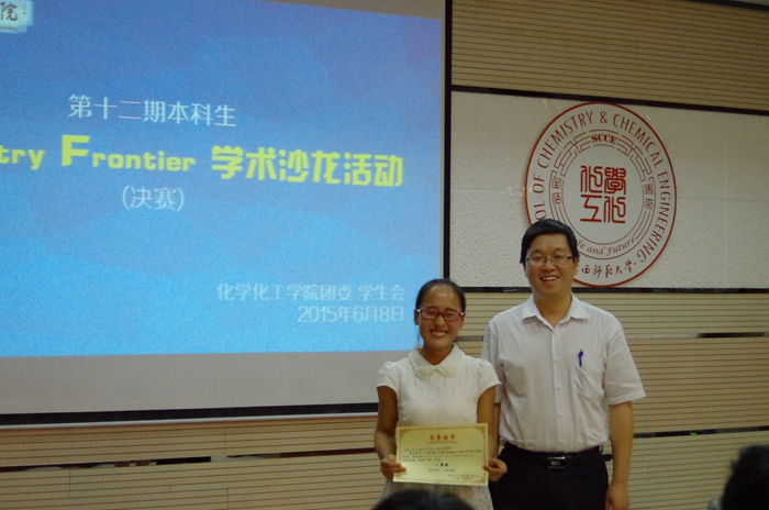 于2015年6月8日晚7:00在致知楼1668报告厅举办了第十二期本科生“Chemistry Frontier”学术沙龙。杨鹏教授、黄治炎副教授、汤卫军副教授应邀担任评委,蘑菇视频